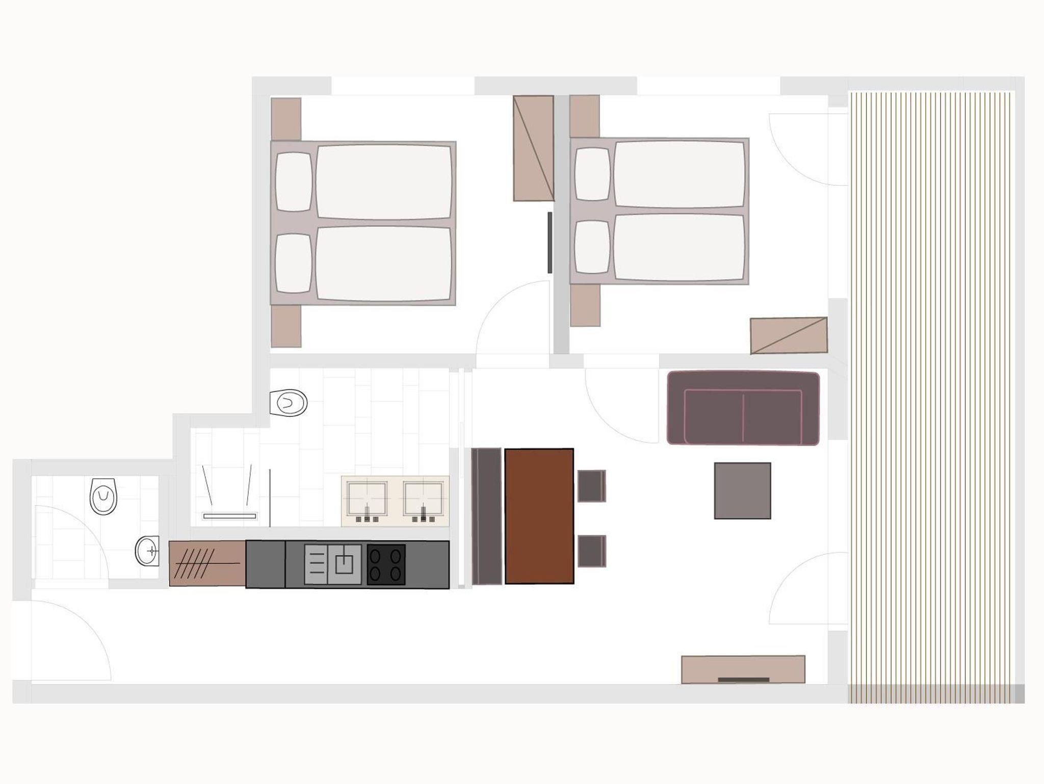 Das Appartement Rosa ist 58 m2 groß und verfügt über 2 Doppelzimmer. Heller, großzügiger Wohnraum mit Essbereich und Sofa, sowie voll ausgestatteter Küche und Garderobe. Das Badezimmer ist ausgestattet mit einem Doppelwaschbecken, Dusche und WC sowie weiterem separatem WC. Der große Balkon zeigt nach Süden in Richtung Skigebiet und Loipe!
