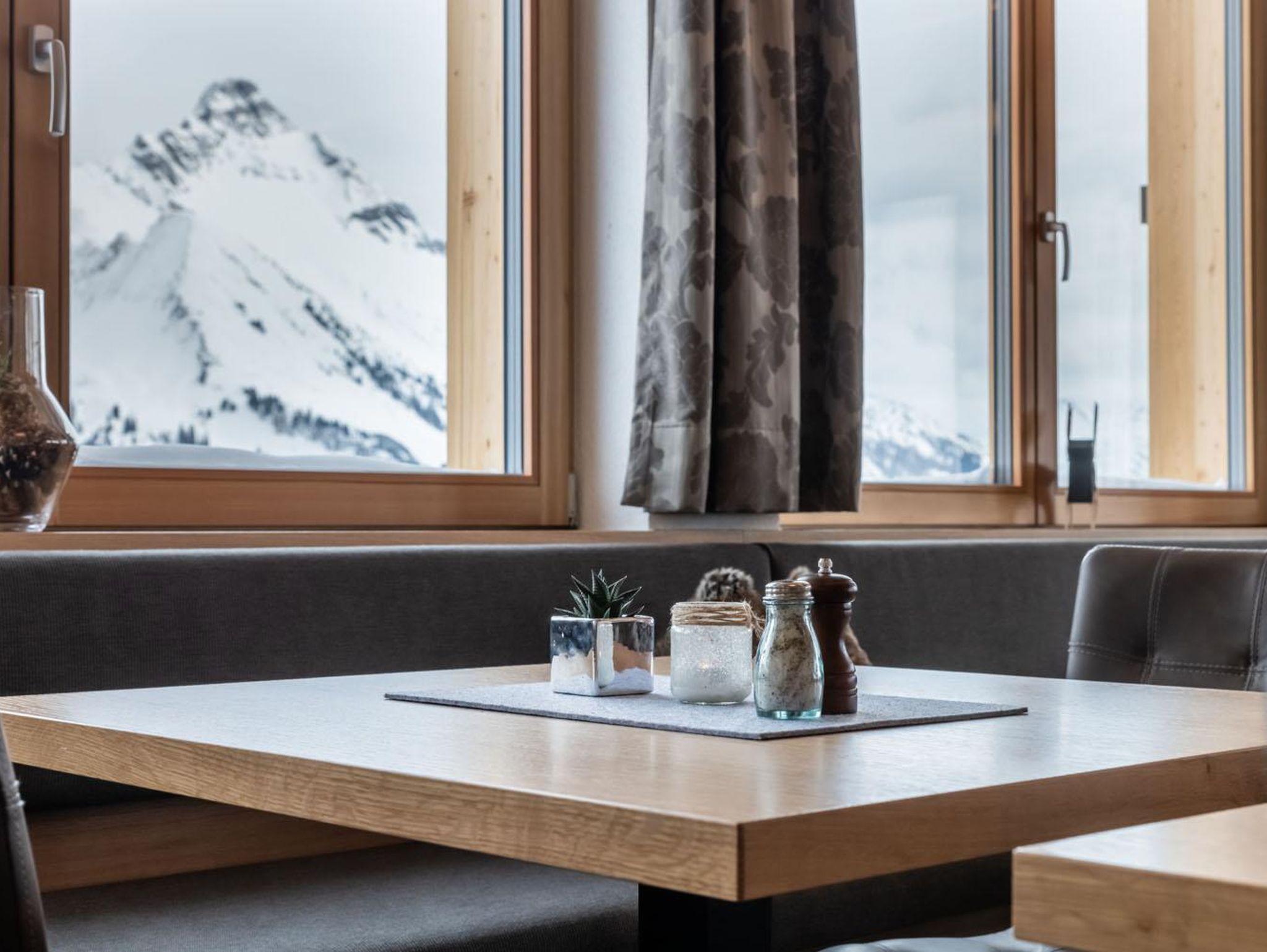 auf einer kleinen Anhöhe gelegen bieten wir Ihnen einen traumhaften Ausblick über das Dorf Warth und seine markanten Felsriesen! Bei uns können Sie direkt vor der Haustüre in die Ski- und Wanderwelt einsteigen und das ganz ohne Bus oder Auto!