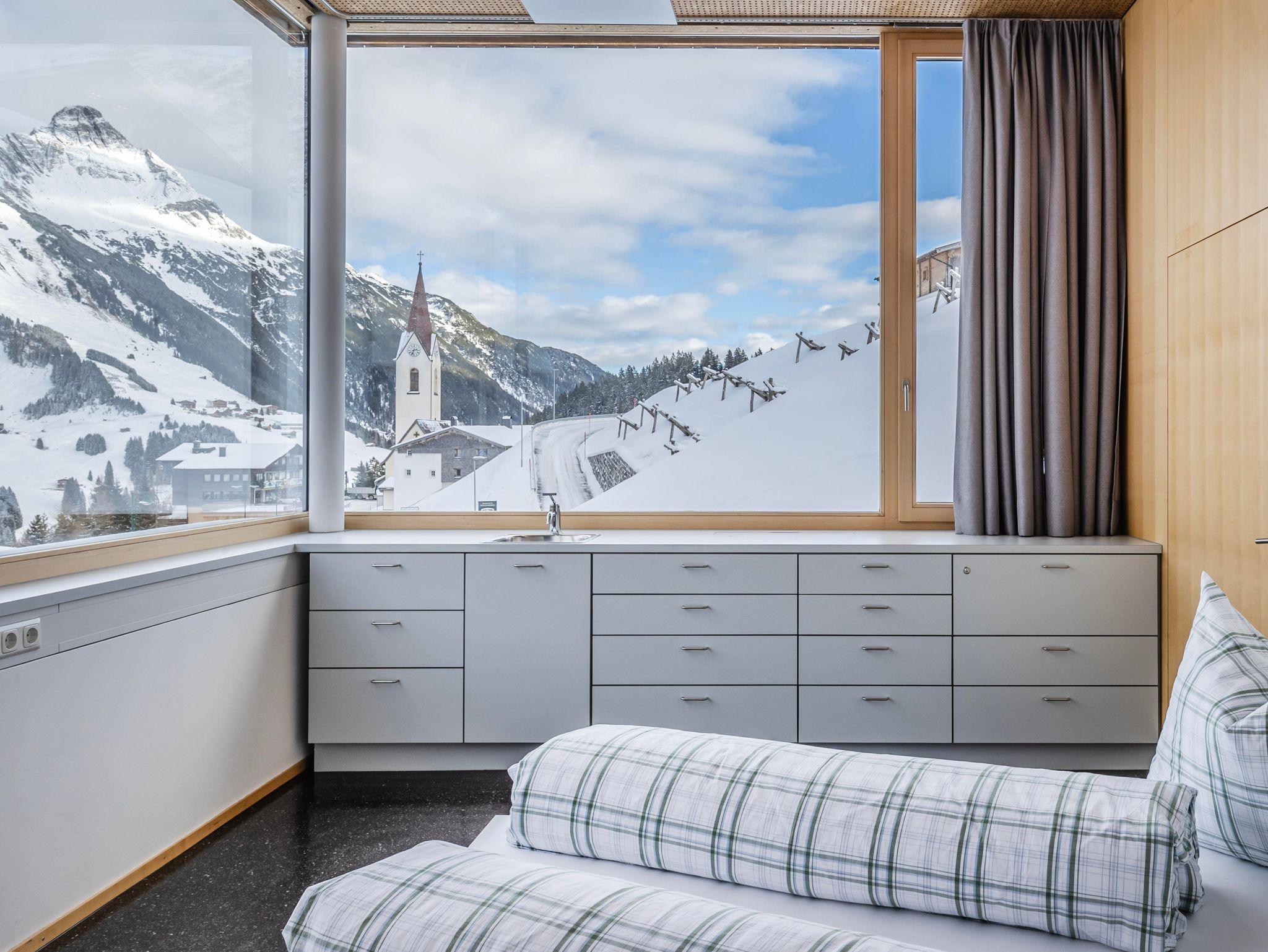 Modernste Architektur eingebettet in märchenhafter Berglandschaft.