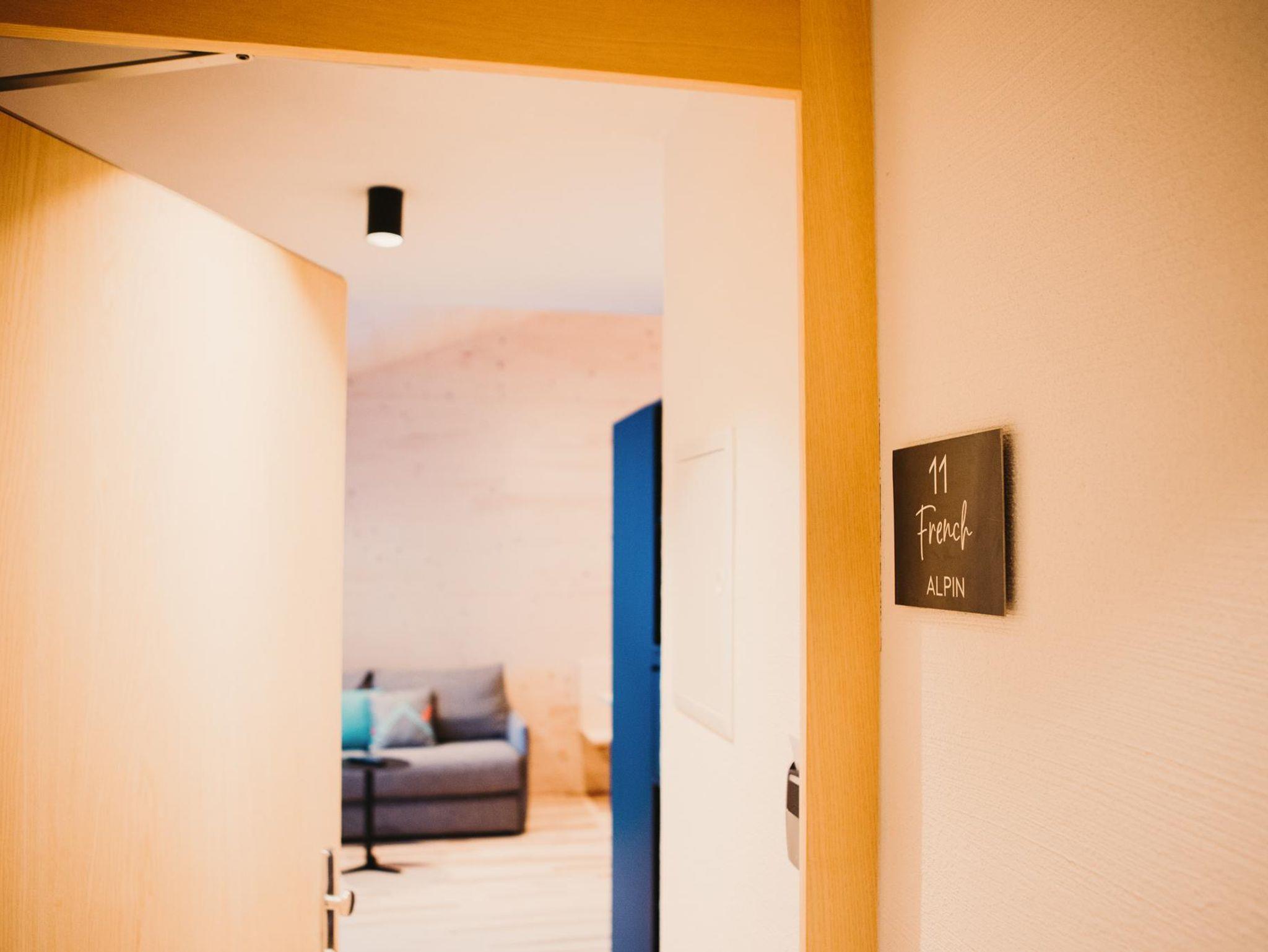 Das French Alpin ist der ideale Rückzugsort für Ruhesuchende. Unglaublich großzügig für 2 Personen, ideal für Familien mit 2 Kindern. Getrenntes Schlafzimmer mit Glasfaser-TV und hochwertigem Doppelbett aus Zirbenvollholz für tiefen Schlaf, großzügiger Wohnbereich mit Essbereich, Kitchenette und Glasfaser-TV, hochwertige Schlafcouch für die 3. und 4. Person. Französischer Balkon nach Süden. Badezimmer mit Walk-In Regendusche und WC. Telefon, Safe und kostenloses WLAN.