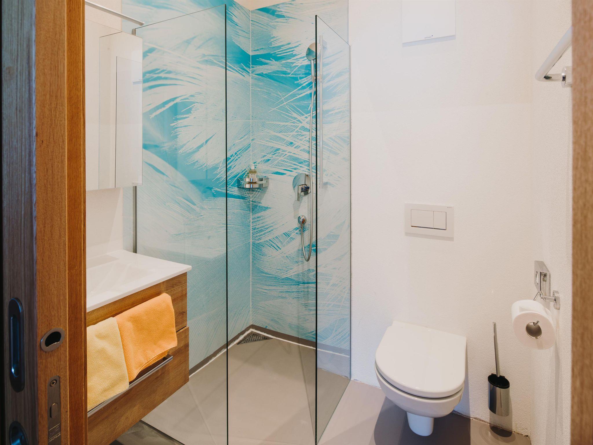 Unser kompaktes Raumwunder! Perfekt für Familien mit zwei Kindern oder zwei befreundete Pärchen, in der Familiensuite Alpin 82 findet ihr alles, was Euer Herz begehrt. Offen gestalteter und gemütlicher Wohnraum mit Essbereich und Glasfaser-TV, voll ausgestattete Küche (ohne Mikrowelle) aus hellem Ahornholz. Zwei getrennte Doppelzimmer mit jeweils eigenem Badezimmer mit Dusche und WC, eingerichtet mit beruhigendem und erdendem Eichenholz. Highlight: beim Abendessen den Sonnenuntergang beobachten. Die Familiensuite Alpin 82“ befindet sich im 1. Stock des Nebengebäudes, welches unterirdisch mit dem Hauptgebäude verbunden ist und verfügt über keinen Balkon. Safe und kostenloses WLAN vorhanden.