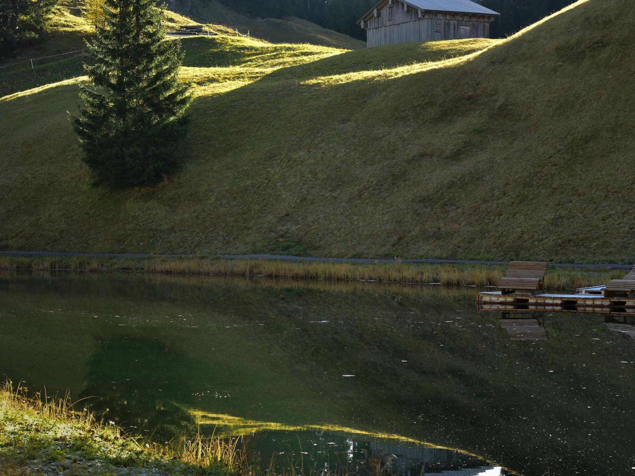Das Appartement liegt im Erdgeschoss auf einer Anhöhe, mit Blick auf den vor Ihnen liegenden Seebachsee.