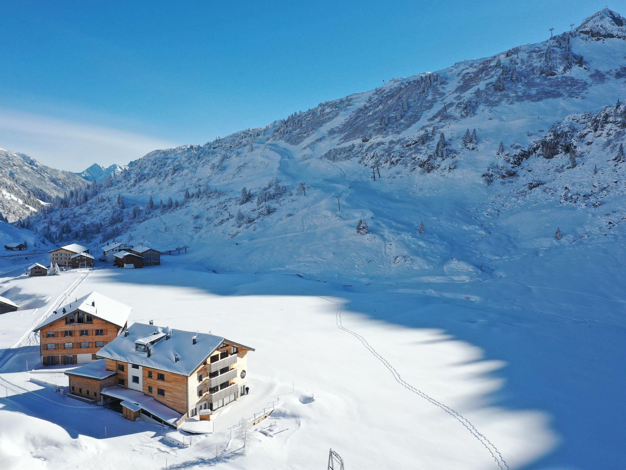 An der Haustüre die Schier anschnallen und die gesamte Schiregion des Arlbergs, von Warth über Lech-Zürs bis St. Anton erkunden. Nach dem Schivergnügen fahren Sie mit den Schi wieder direkt bis zur Haustüre zurück.