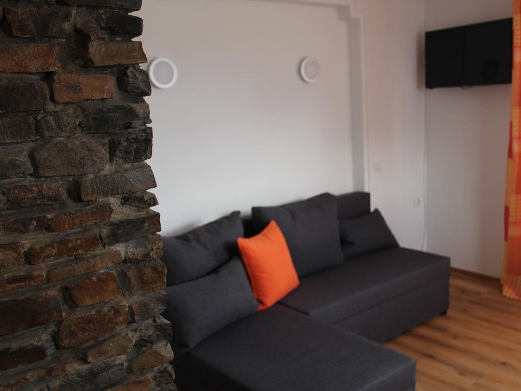 Die ca. 75m² große Ferienwohnung befindet ist im Erdgeschoss mit direktem Zugang zum Garten. Die Wohnung verfügt über zwei Doppelzimmer, eine Wohnküche, Bad mit Dusche und separatem WC.