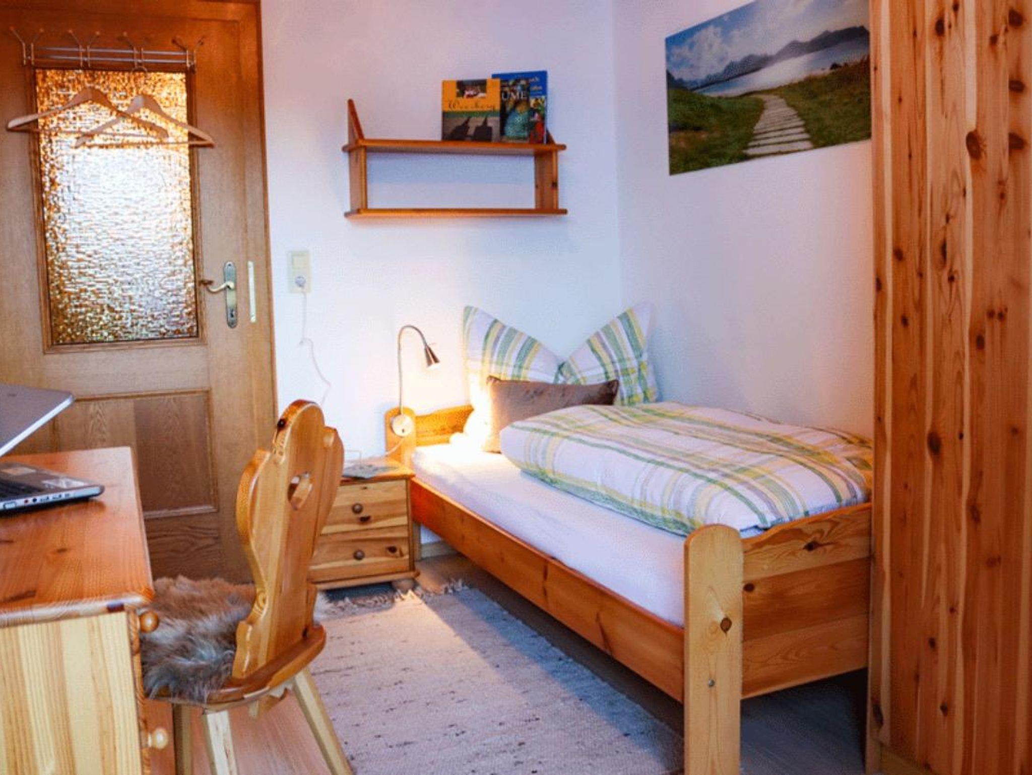 Im 1. Stock gibt es eine kleine Küche mit Holzküchenofen, ein kleines Bad mit Dusche/WC, 2 Doppelzimmer, 1 Dreibettzimmer, 1 Einzelzimmer mit Balkon.