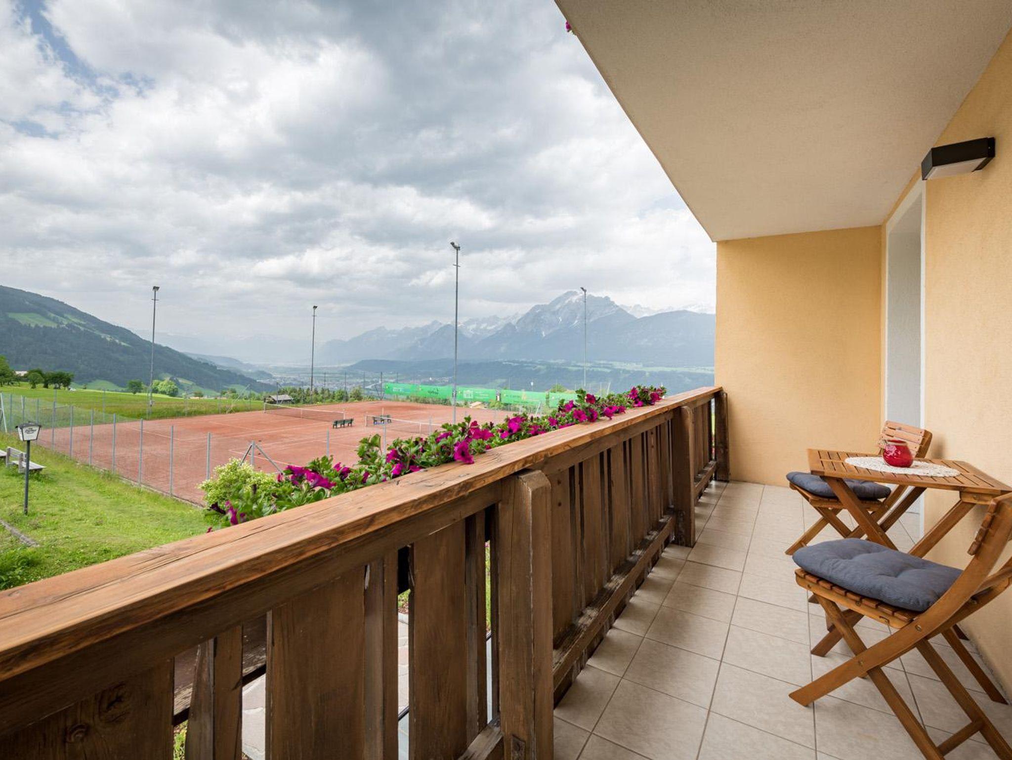Auf dem großen Balkon kosten Sie den wunderbaren Ausblick auf die schöne Bergwelt und Innsbruck von mittags bis zum letzen Sonnenstrahl aus!