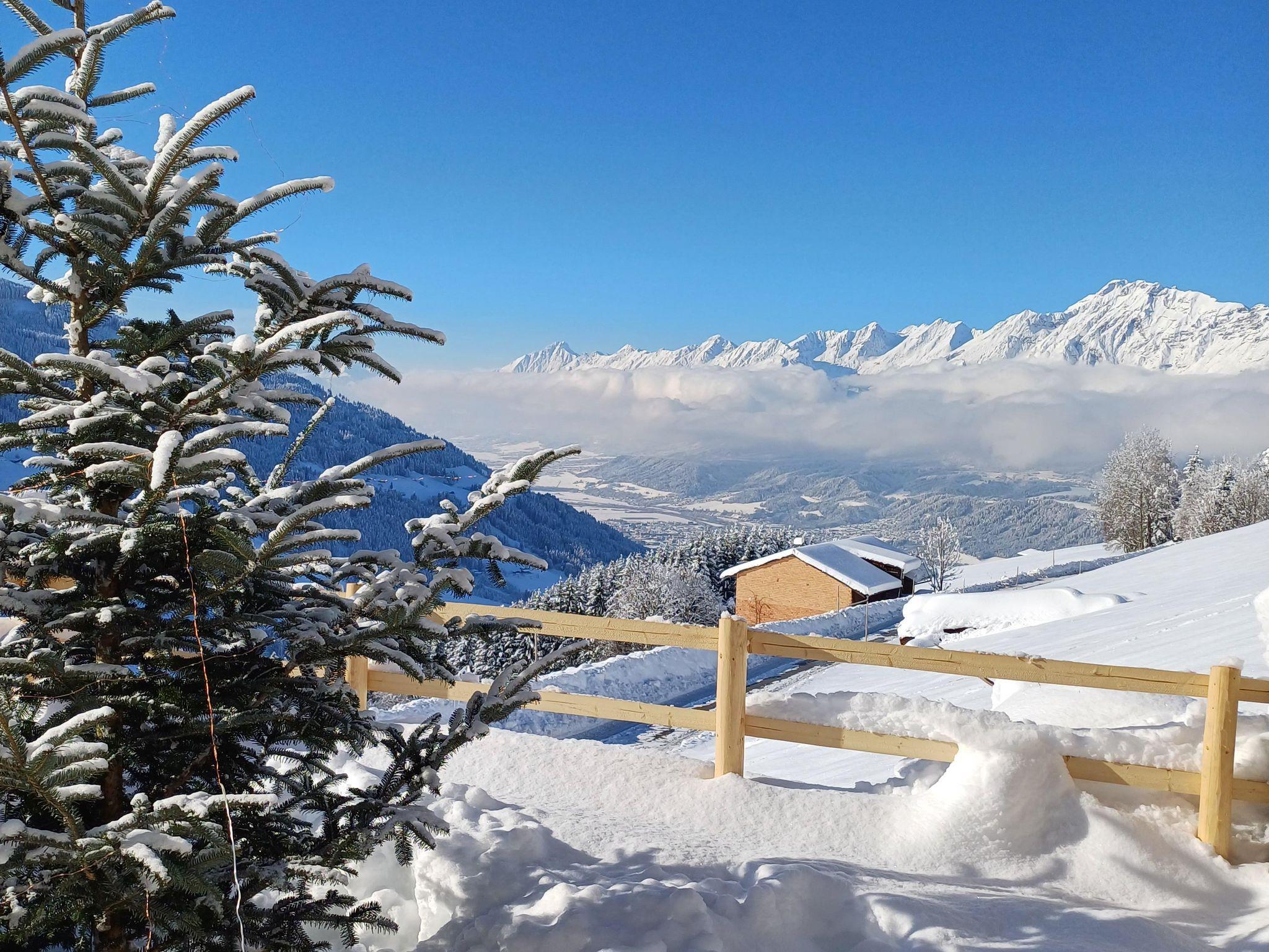 Unser Wieserhof liegt in ruhiger und idyllischer Berglage, von unserer Ferienwohnung aus haben sie einen fantastischen Blick auf die umliegenden Gipfel und über das Inntal bis nach Innsbruck.