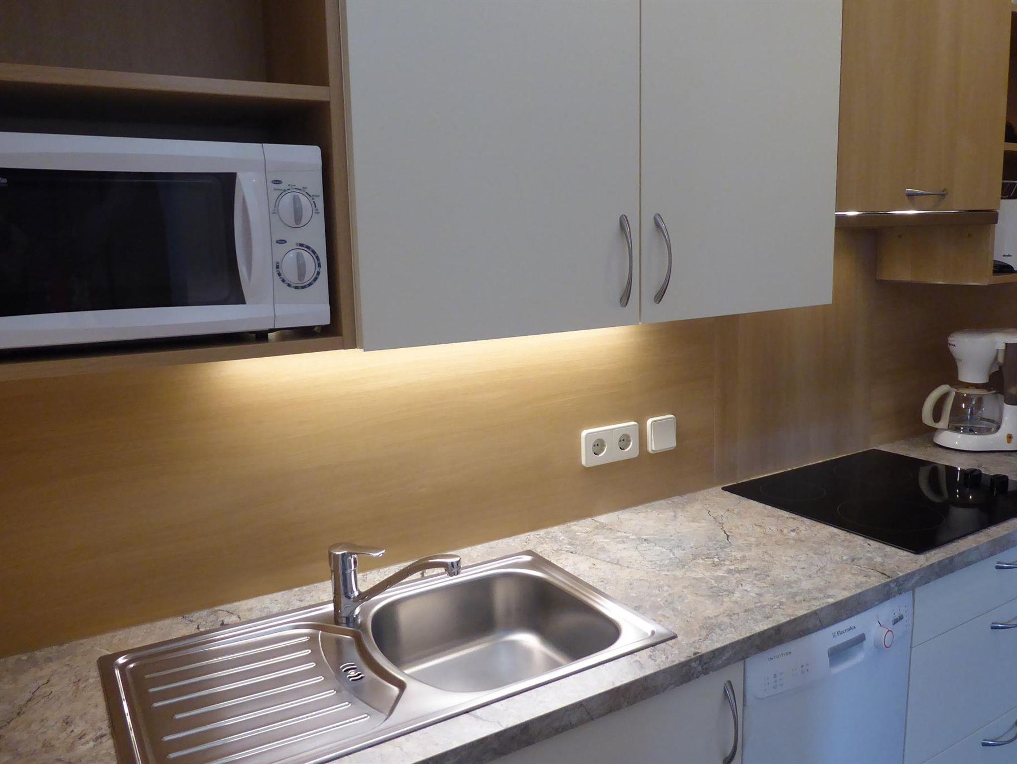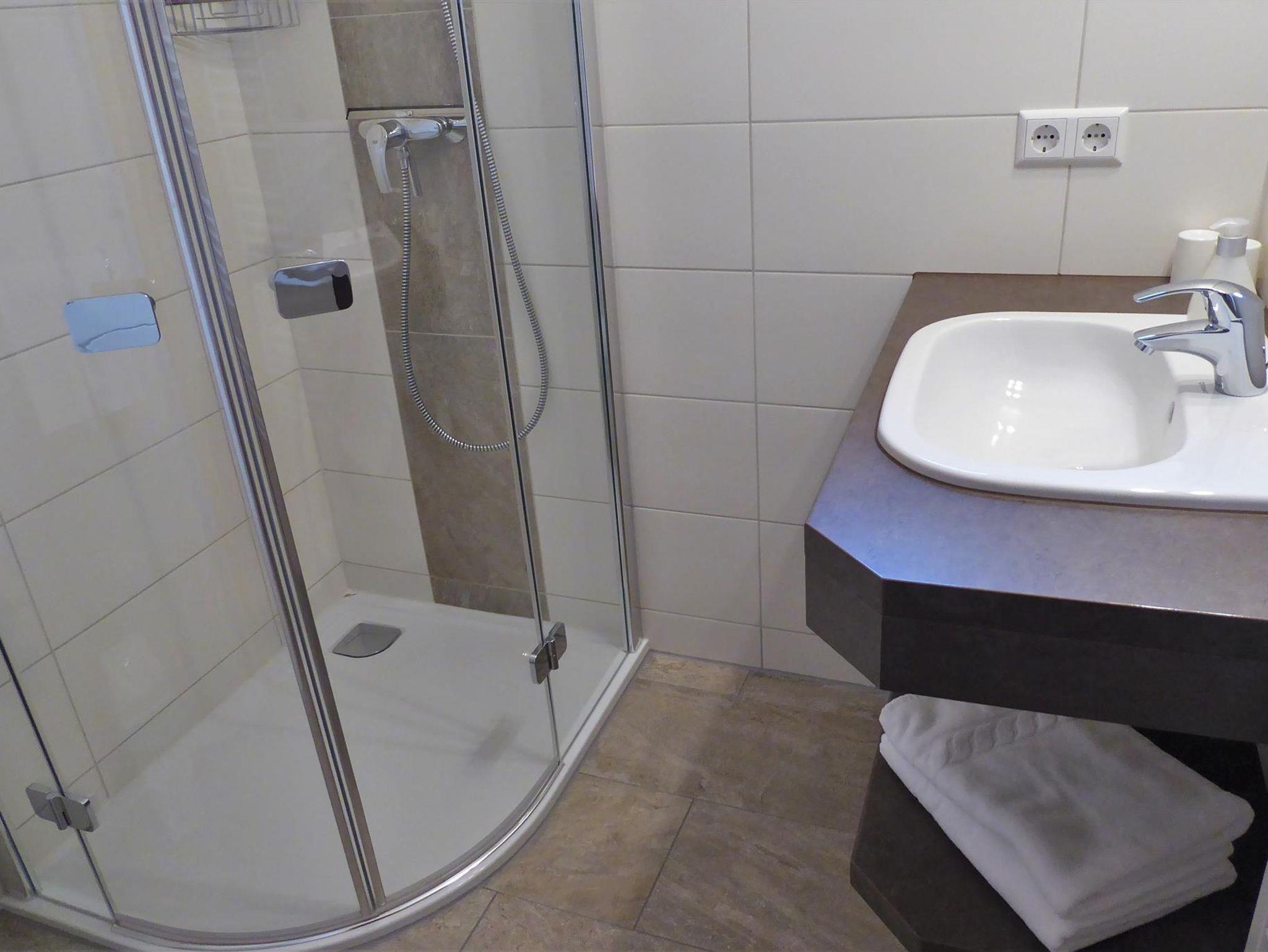 Ferienwohnung mit 30 m² für 2 Personen Lage: 1. Stock, Nordost, Talblick, Morgensonne Wohn- / Schlafzimmer mit Doppelbett Vorraum mit Küchenzeile und Spülmaschine Badezimmer mit Dusche WC Balkon