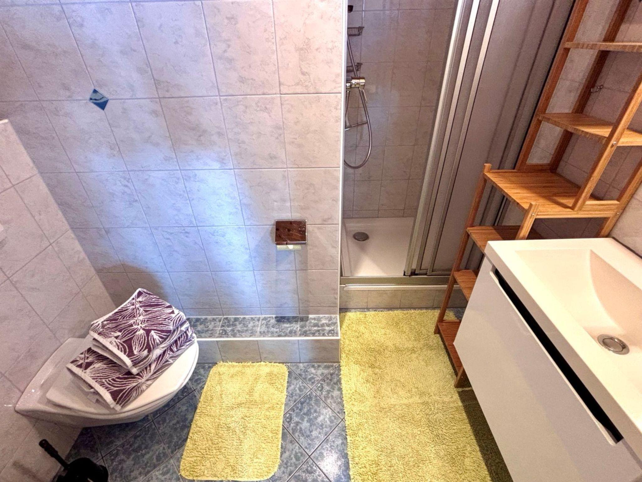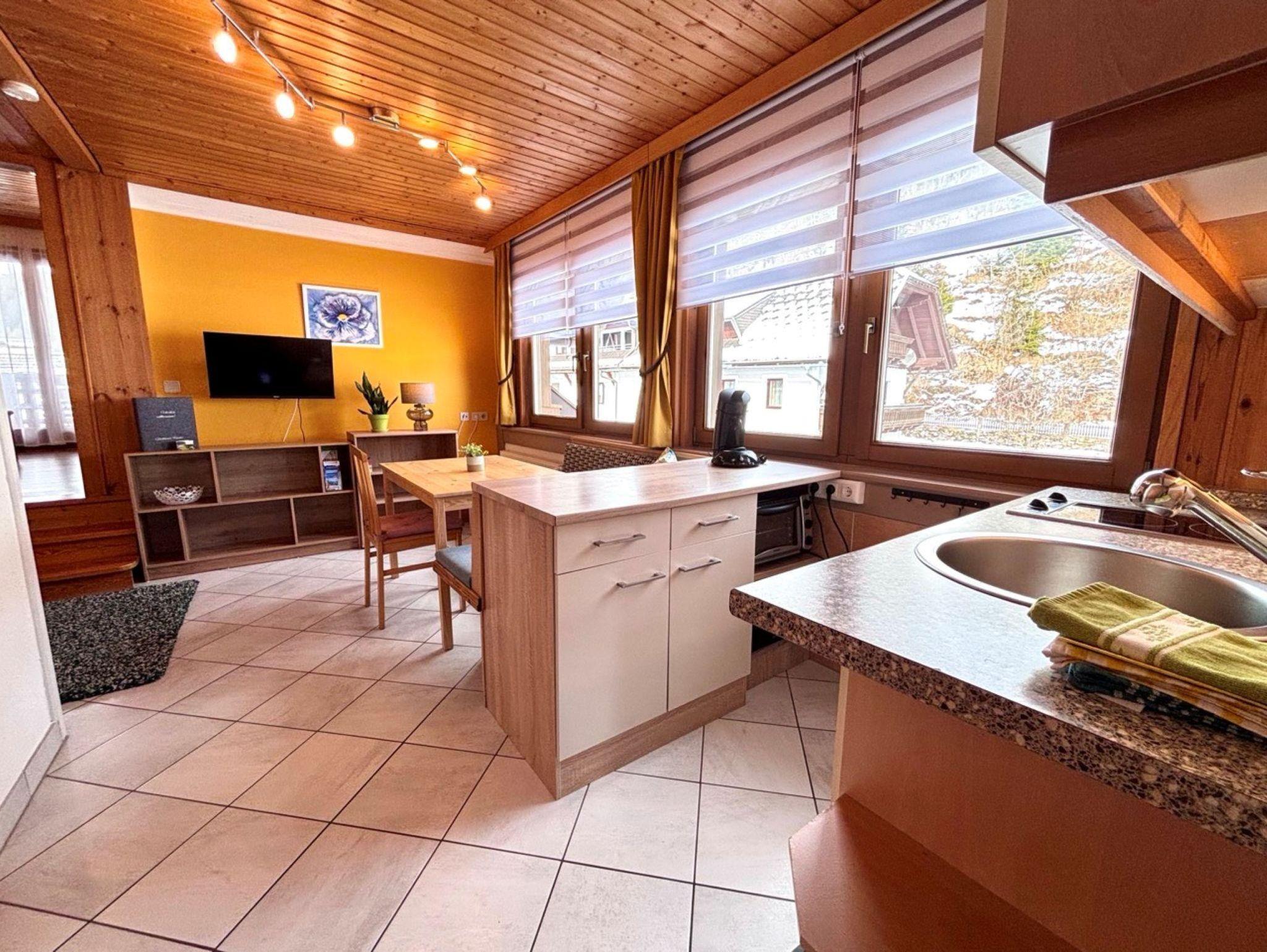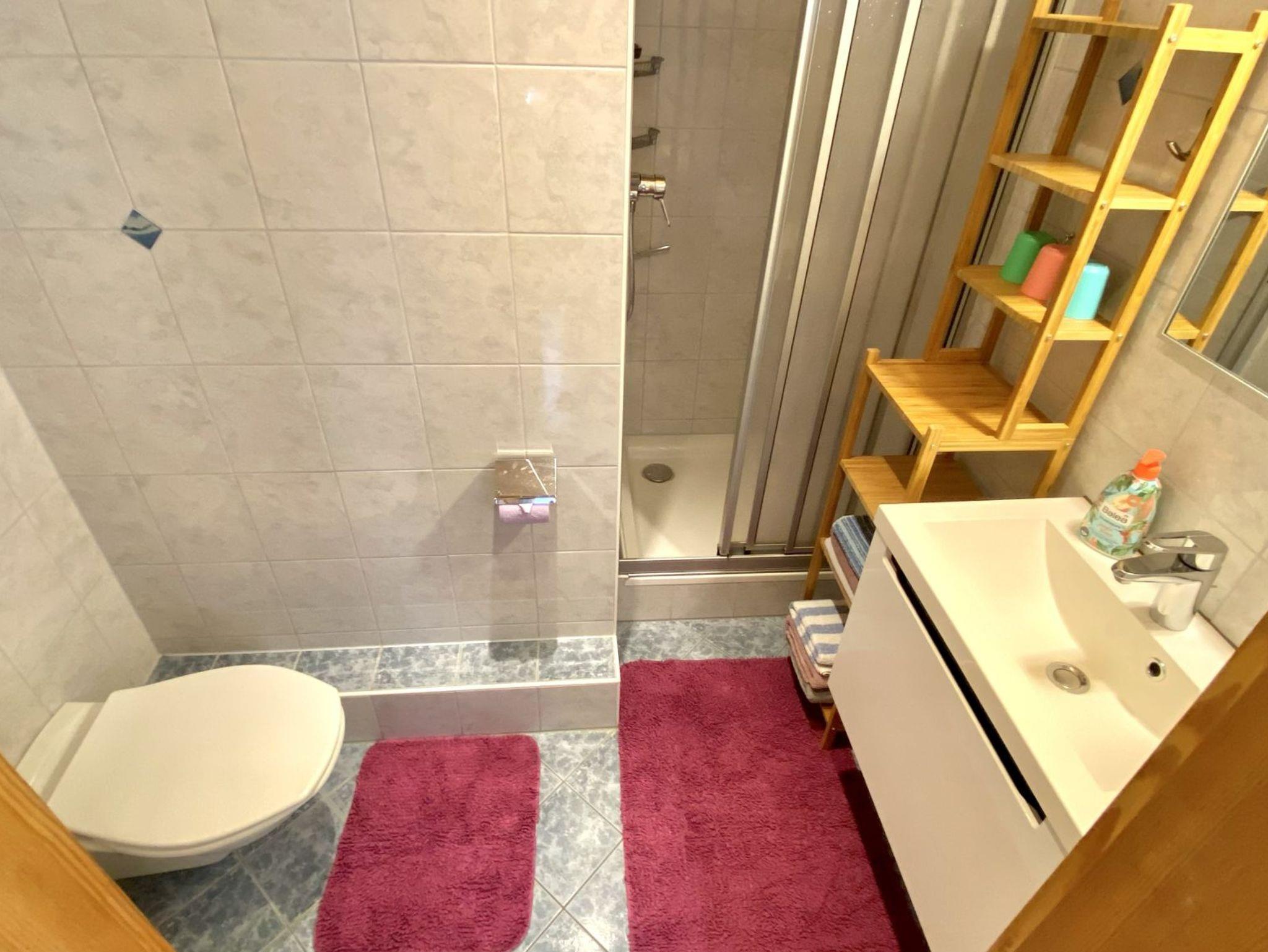 Schöne gemütliche Wohnung für 2-3 Personen (Schlafzimmer: 3-Bettzimmer; 1x Ehebett & 1x Einzelbett) mit ca. 35 m². Kochnische mit 2 Herdplatten, Mikrowelle, Toaster, Minibackofen, Kühlschrank mit kleinem Gefrierfach, Filterkaffeemaschine und Senseo-Padmaschine, Wasserkocher, Koch- und Essgeschirr, Bettwäsche, Handtücher & Geschirrtücher einmalig vorhanden, Fön, Sat-TV, Badezimmer mit Dusche, Waschbecken und WC, Balkon.