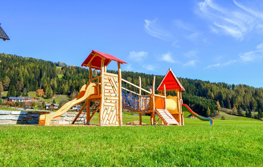 På de varme dage kan I begynde dagen med en friskbrygget kop kaffe i haven, tabe kæben over bjergudsigten og holde øje med børnene, der klatrer, gynger og leger.