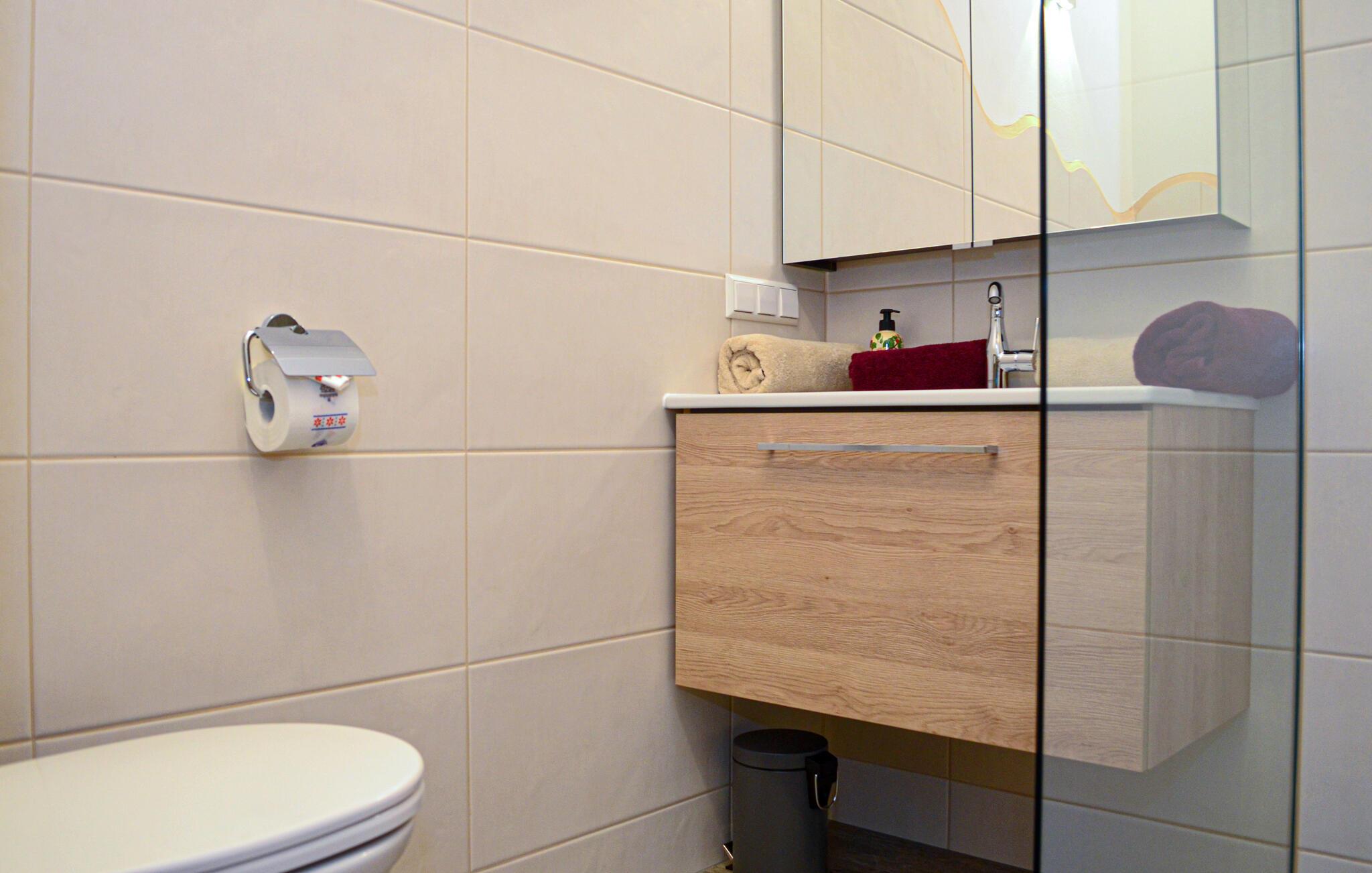 Badeværelse (nr. 1) - WC. Varmt og koldt vand. Bruser