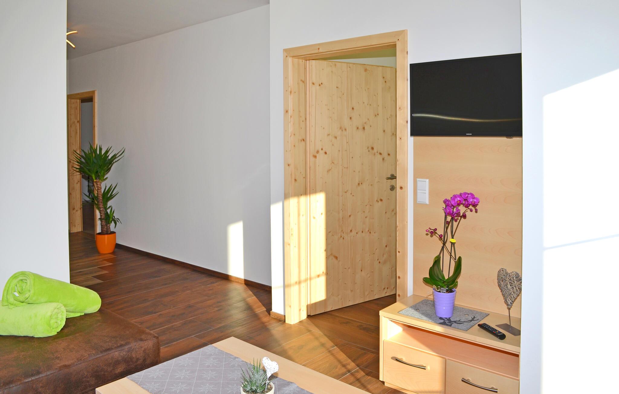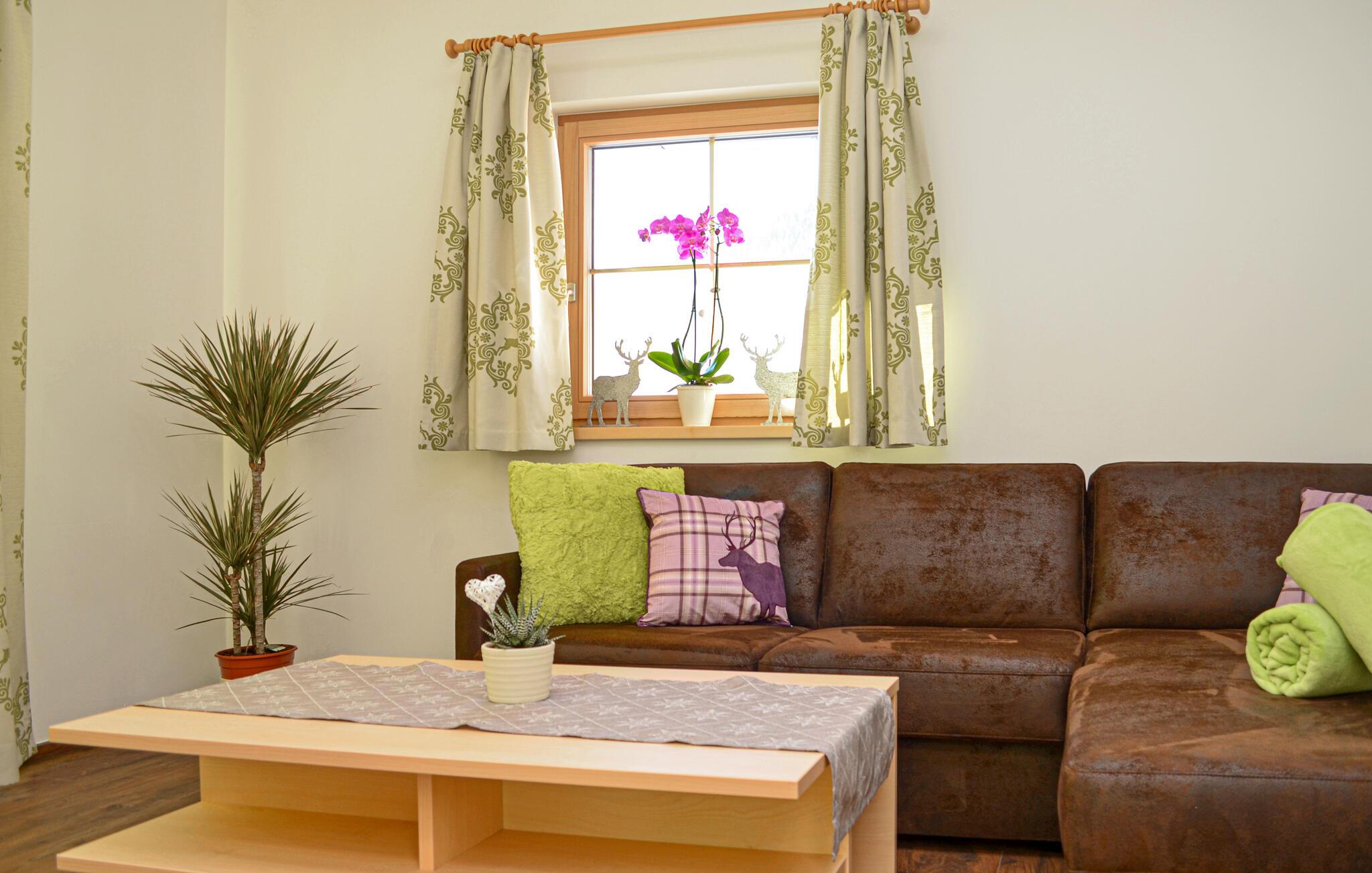 Velkommen til denne lejlighed, der med sin naturskønne beliggenhed er den perfekte base for en ferie med aktiviteter i naturen og spændende udflugter i området. Indretningen fremtræder pænt og attraktivt med komfortable møbler og gode faciliteter, så I kan slappe af før og efter dagens udflugter. Nyd en lækker aftensmad med udsigt til det fri og lad en begivenhedsrig dag gå på hæld i sofaen med fødderne oppe, lækre snacks og en god film på tv'et, mens I lægger planer for den kommende dag.