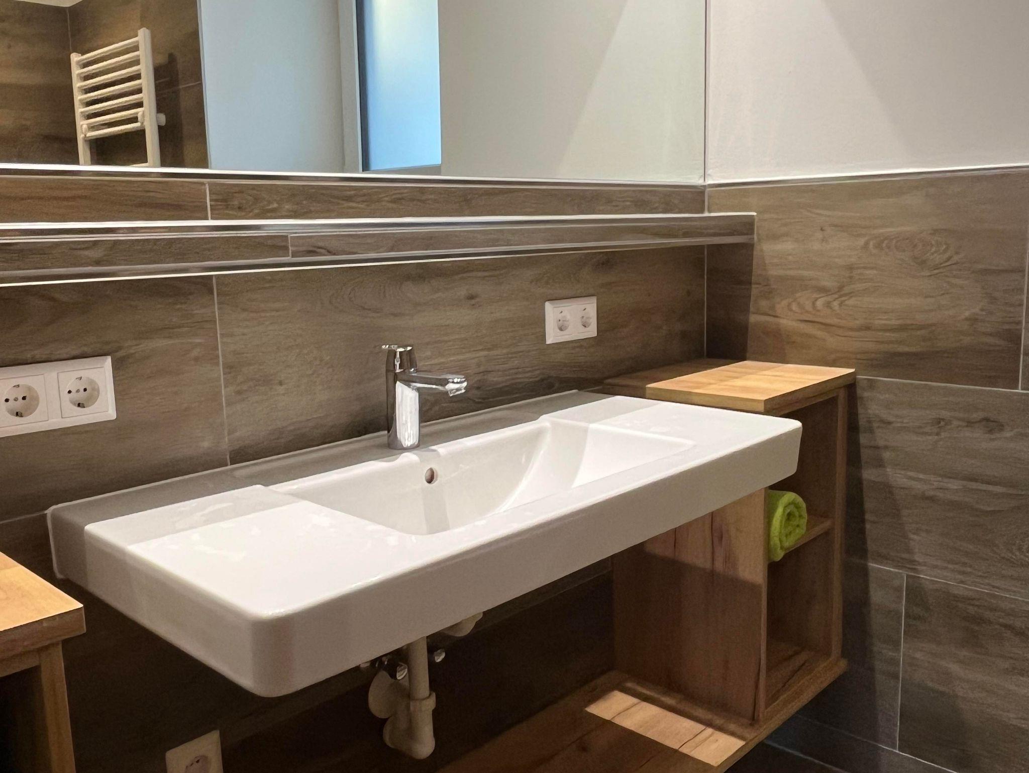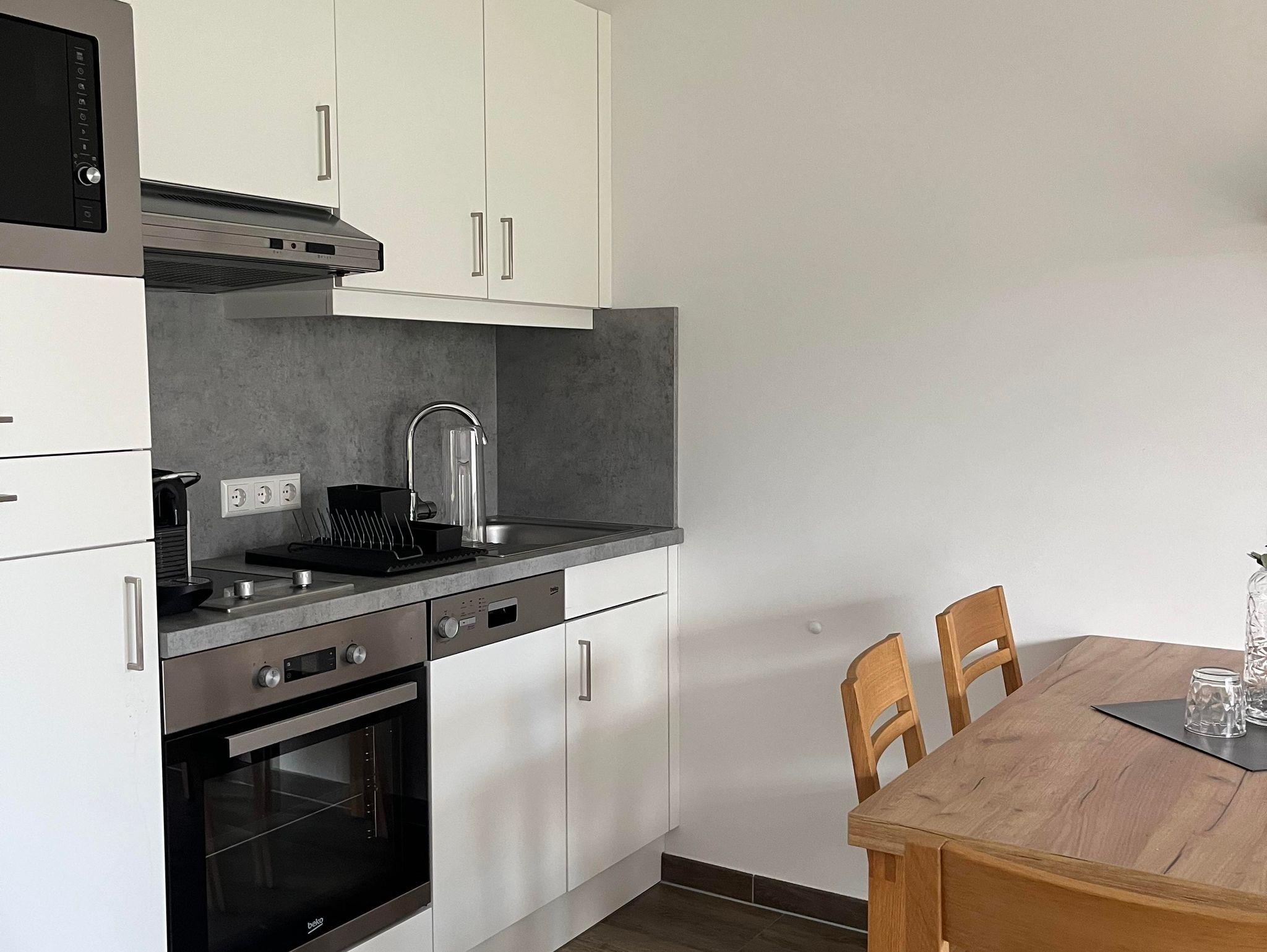 Die Appartements überzeugen mit hellen, lichtdurchfluteten Räumen, einem offenen Koch-, Ess- und Wohnbereich mit gemütlicher Schlafcouch sowie direktem Zugang zu Balkon oder Garten. Von dort hast du einen traumhaften Blick auf die umliegende Bergwelt. Das großzügige 3-Zimmer-Appartement bietet dir zwei Schlafzimmer – eines davon mit Etagenbett – und ein modernes Badezimmer mit Walk-In-Dusche.