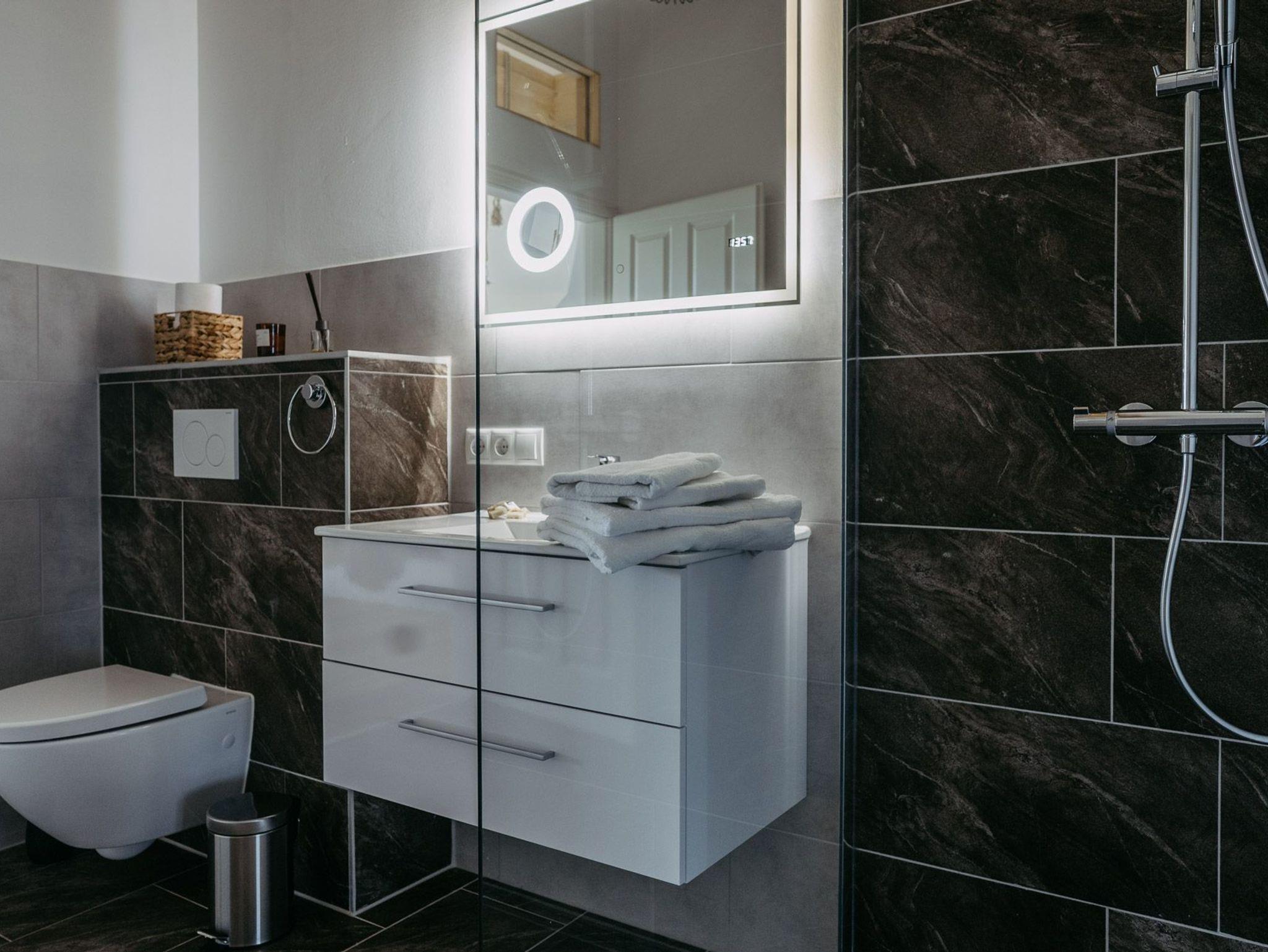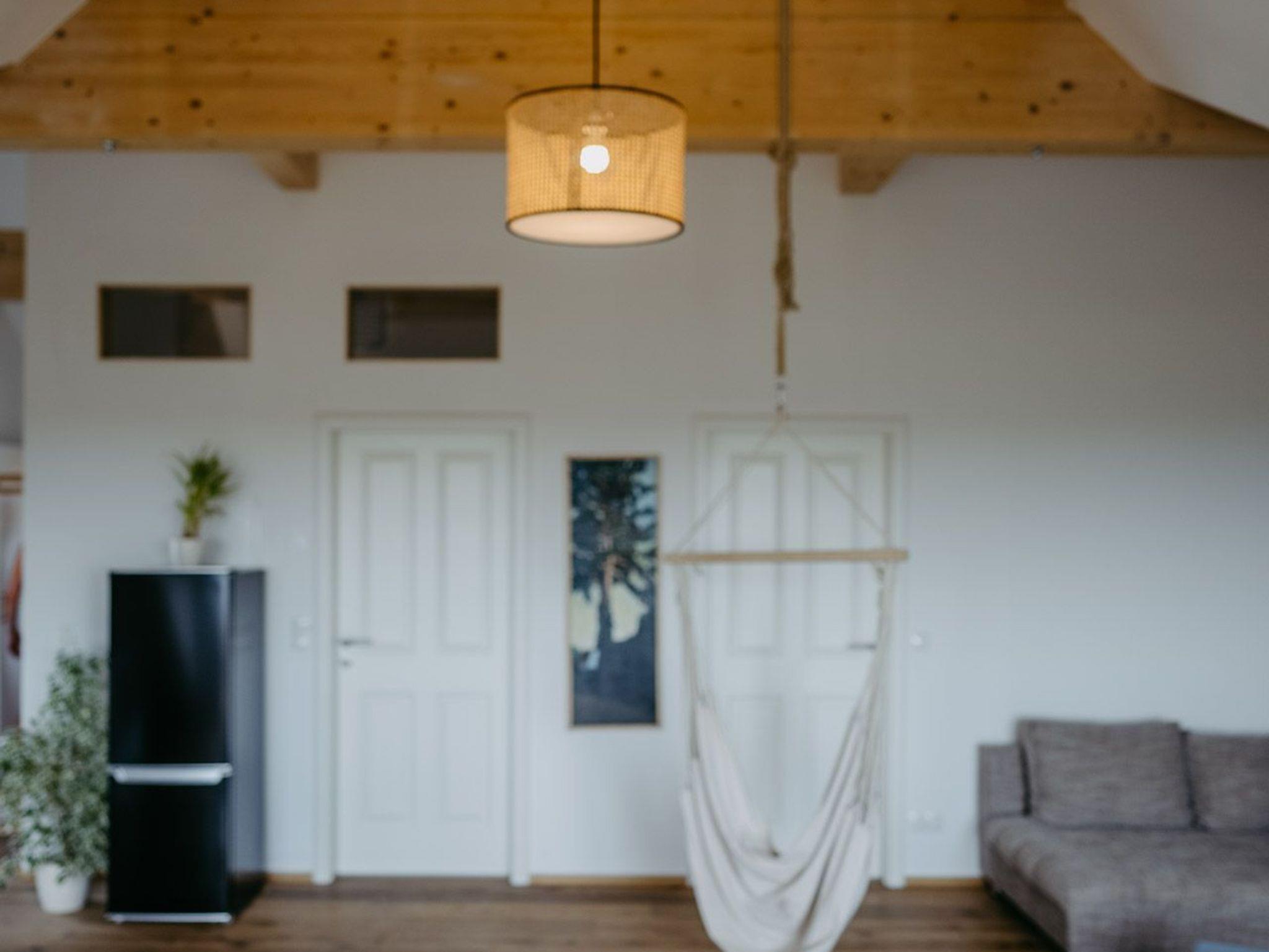 70m² Apartment, 1 Schlafzimmer mit King Size, und Smart TV und Safe, 1 sehr, sehr großer Wohnraum mit Wohnzimmer, ausziehbarer Couch in Doppelbettgröße und Hängeschaukel, Esszimmer und Küchenzeile, großzügiger überdachter Balkon, großes Badezmmer,