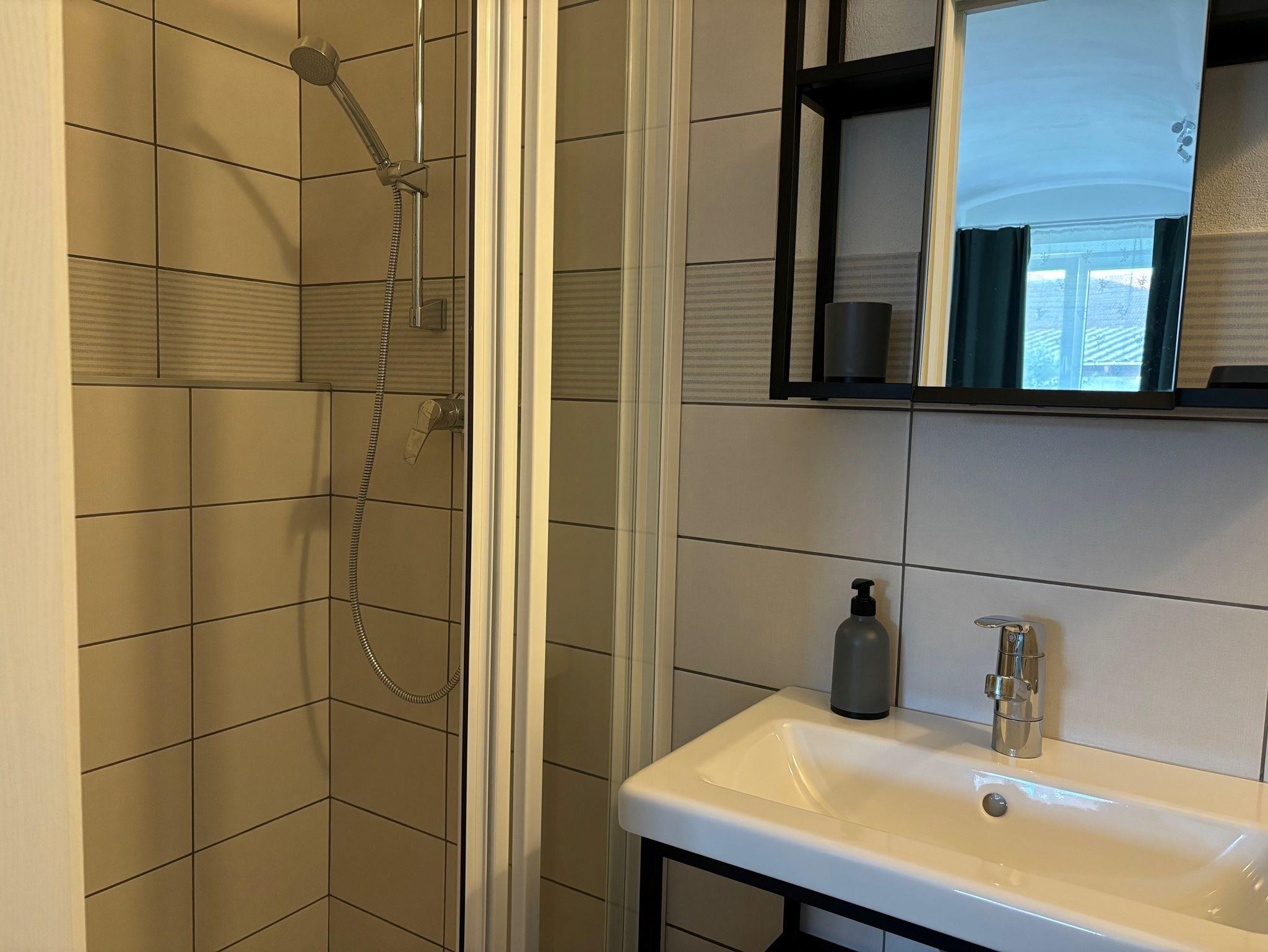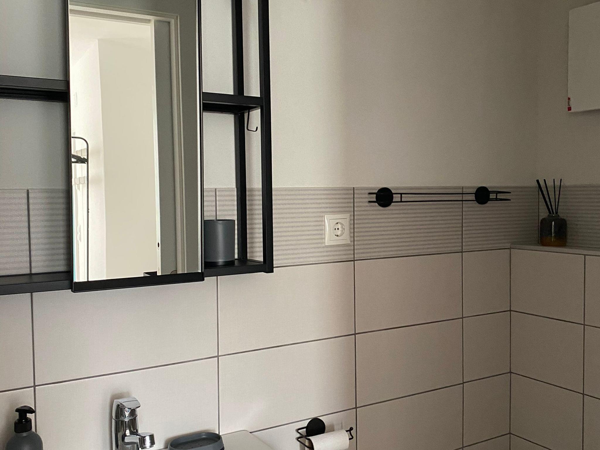 Eigenes Badezimmer mit modernen Annehmlichkeiten.