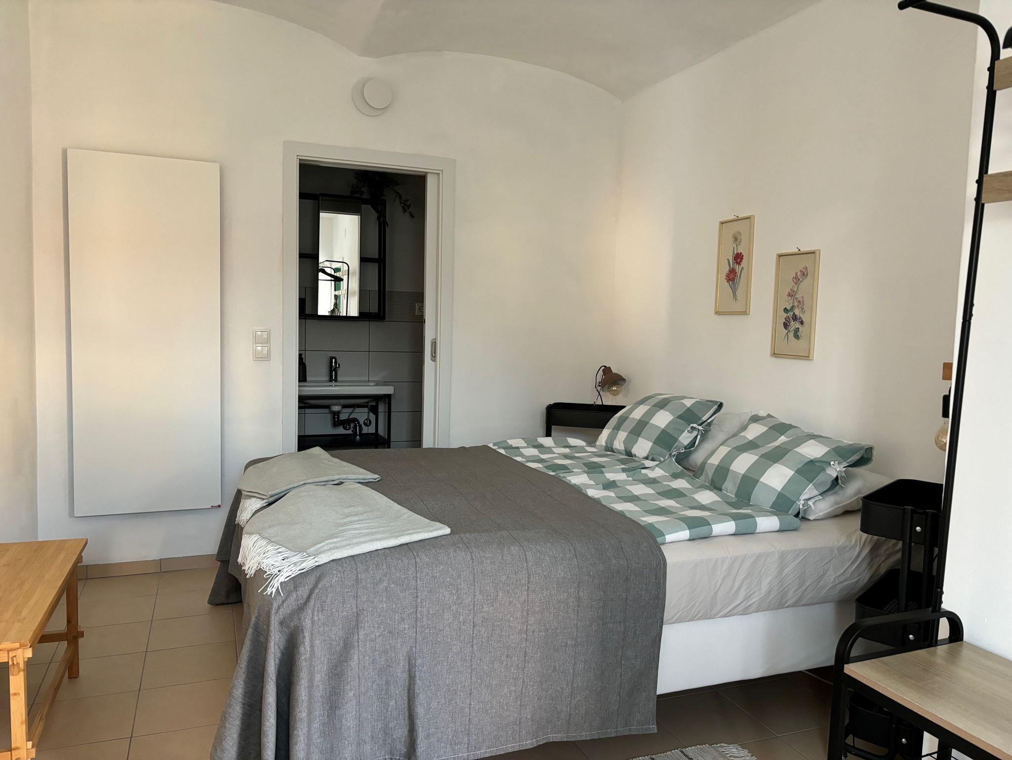 Das Zimmer Ulrich mit 15 m² (Zimmer 12,5 m² + Bad 2,5 m²) umarmt die Stabilität der Erde und den Glanz des Erfolgs. Sie finden ein einladendes Doppelbett, kann auch als zwei Einzelbetten möbliert werden, mit zwei Nachttischen, dass eine perfekte Umgebung für Ruhe und Erholung bietet. Ein kleiner Schreibtisch, zwei Sesseln und eine offene Garderobe stehen zu Verfügung im Zimmer. Der gemeinsame offene Eingang mit Zimmer Dietrich, nur zwei Stufen hoch, fügt ein Gefühl der Gemeinschaft und Offenheit hinzu.
