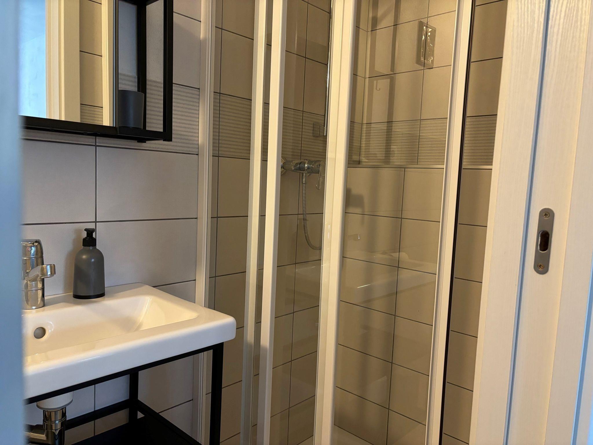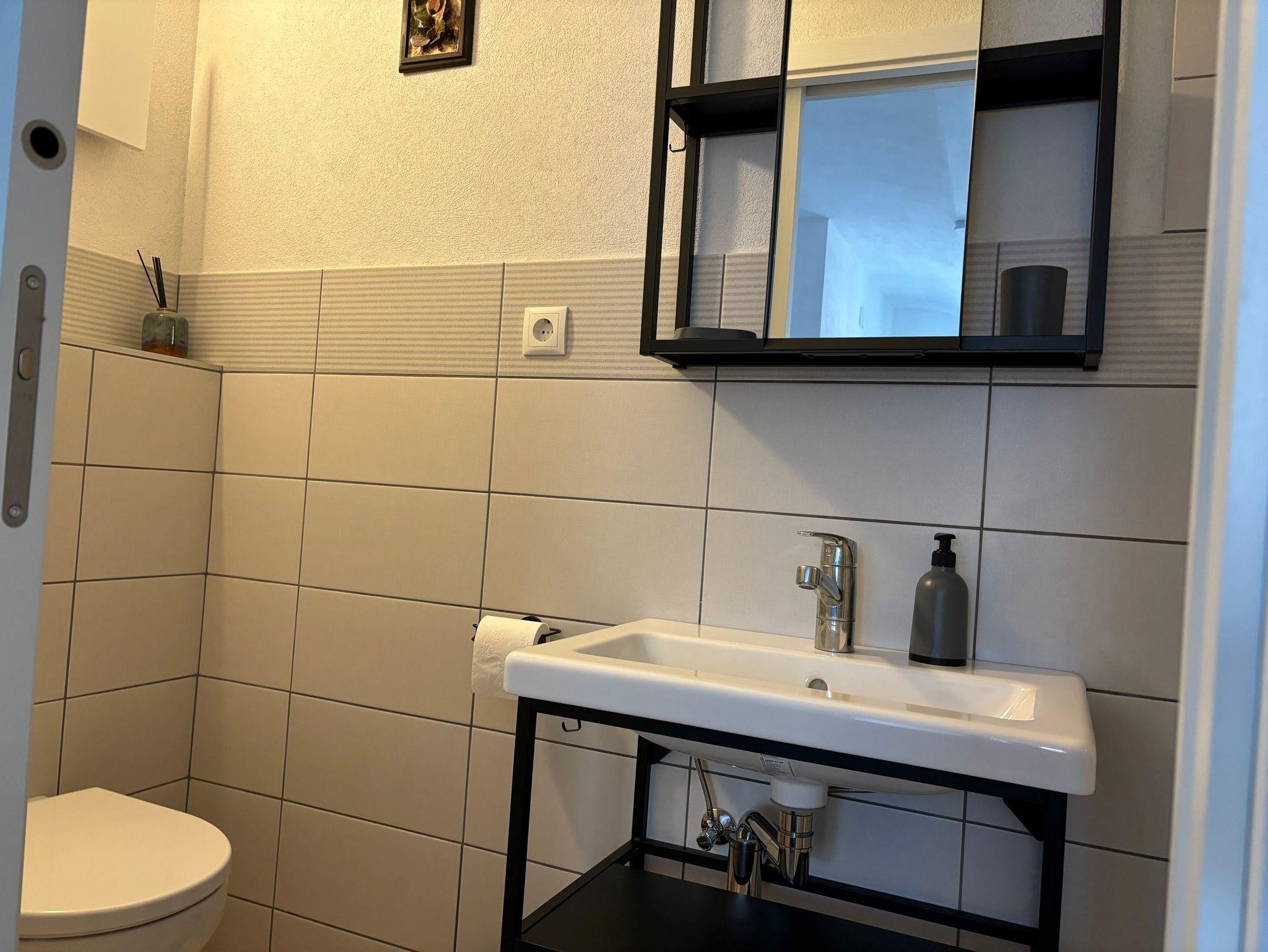 Eigenes Badezimmer mit modernen Annehmlichkeiten.
