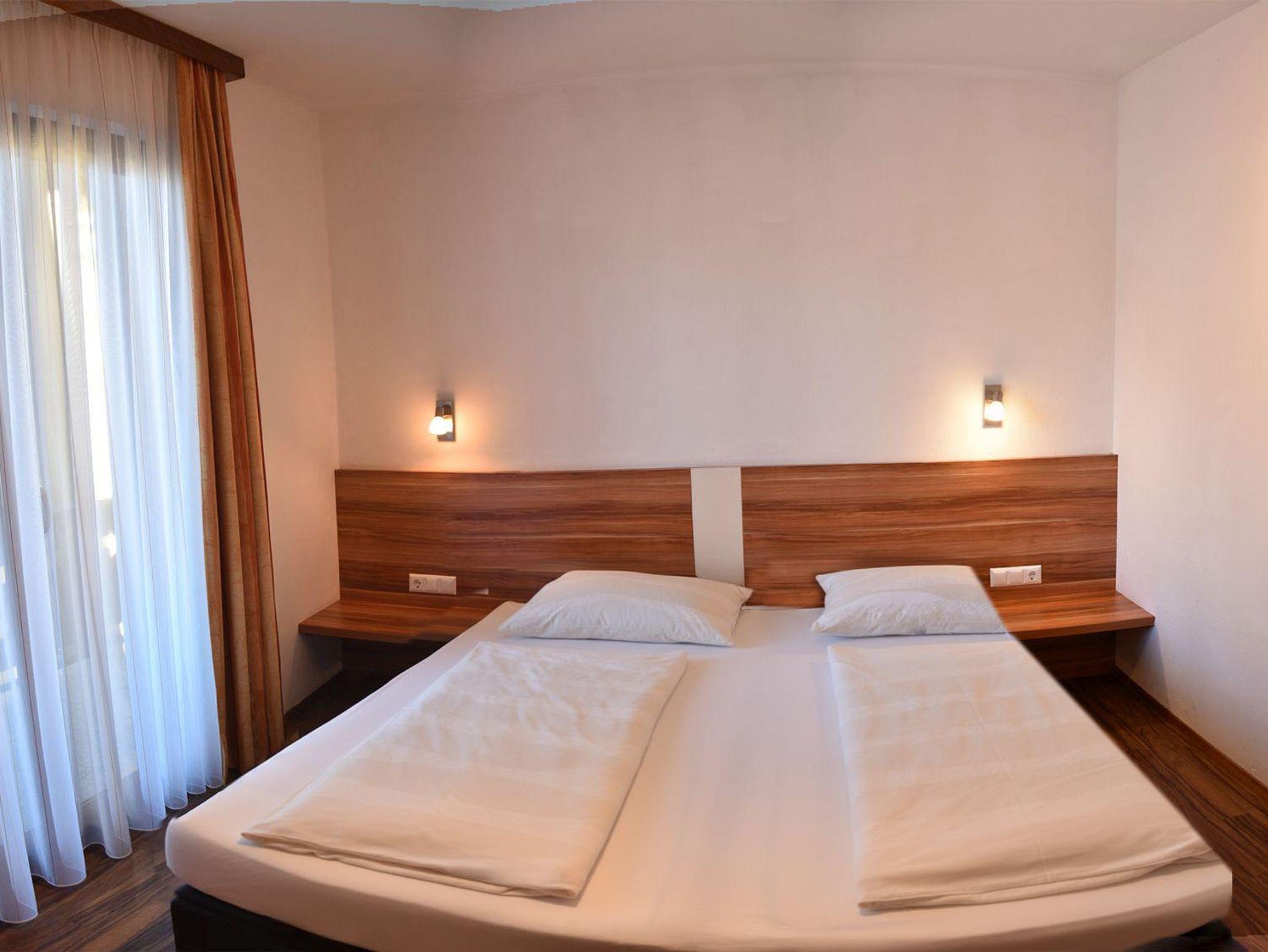 Ferienwohungen mit ca. 48 m² Wohnfläche für 1 bis 4 Personen. Jeweils 1 Schlafzimmer, Wohn-/Schlafraum mit Ausziehbetten, Kochnische, Essecke, Kochgeschirr, Mikrowelle, Wasserkocher, Balkon, Bad oder Dusche/WC, Radio, Sat-TV, Safe und Fön.