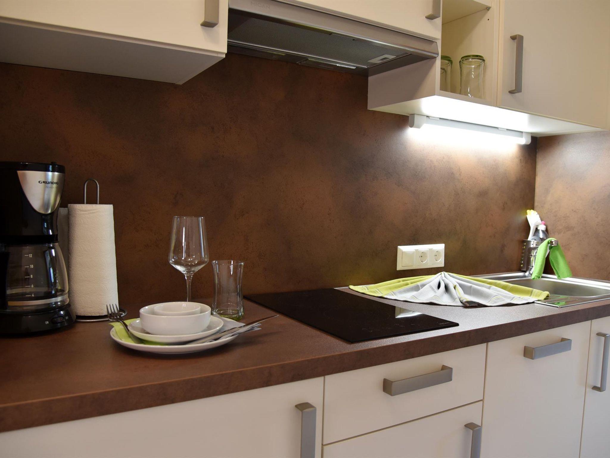 Unsere stilvoll eingerichteten Apartments sind der ideale Ort, um sich nach einem erlebnisreichen Tag zu entspannen. Mit hochwertigen Holzmöbeln, gemütlichen Sitzsofas und einer komplett ausgestatteten Küche bieten wir Ihnen alles, was Sie für einen komfortablen Aufenthalt benötigen. Jedes Apartment verfügt über zwei Balkone, auf denen Sie die frische Luft und den Blick auf den See genießen können. Im Erdgeschoss finden Sie eine einladende Terrasse mit Grillmöglichkeiten – perfekt für gesellige Abende im Freien.
