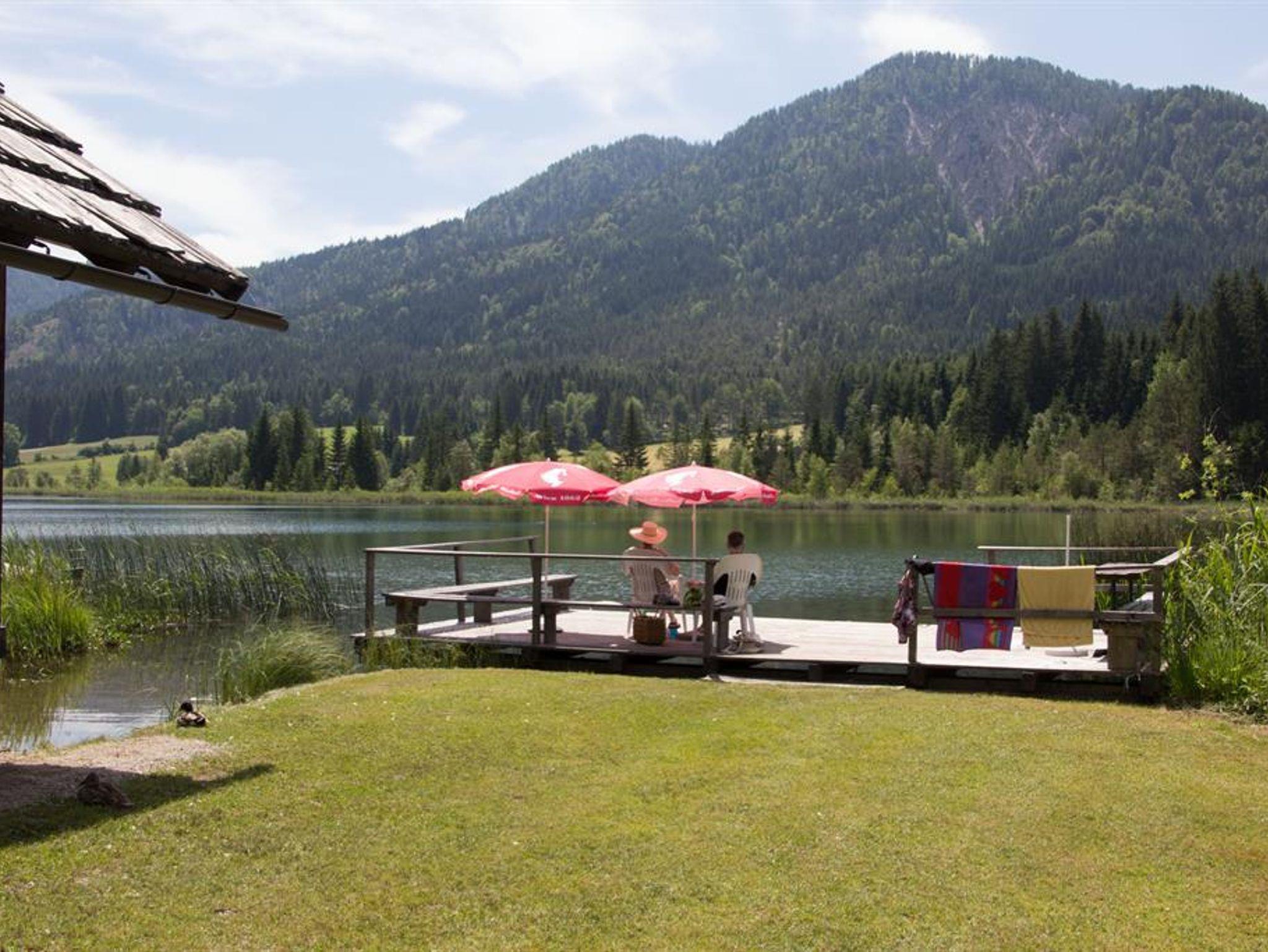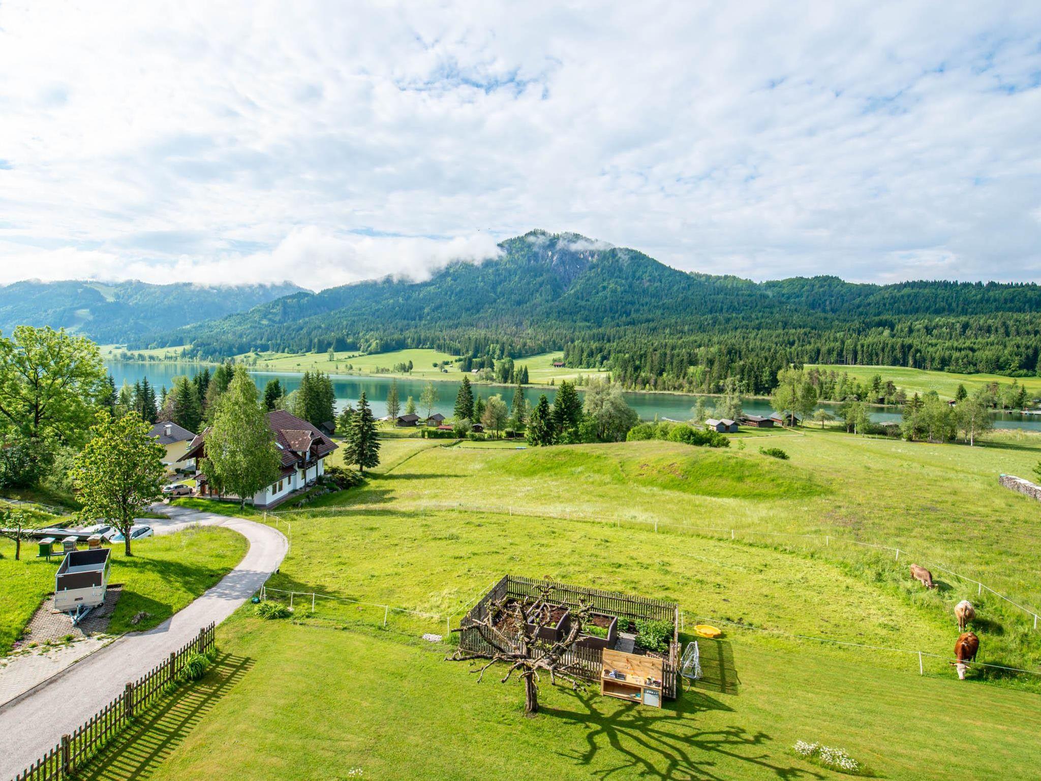 Vor unserem Haus, einem ehemaligen Bauernhof am Weissensee, können sich die kleinen Gäste am Spielplatz mit Sandkasten, auf der Schaukel und beim Tischtennis austoben. Zum eigenen Badestrand mit Steg, Bootshütte (WC, Kabinen) Ruderbooten, Strandmöbeln und Volleyballplatz - kommen Sie gleich über die Wiese.