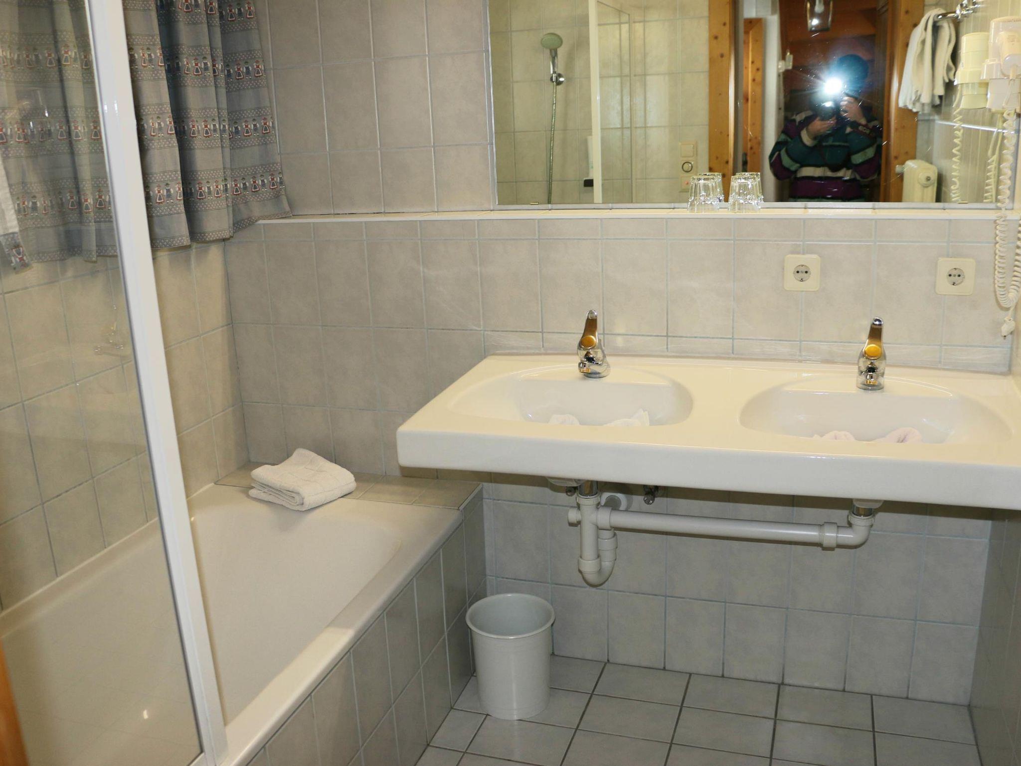 Vorraum, Badezimmer mit Badewanne/Dusche und getr. WC