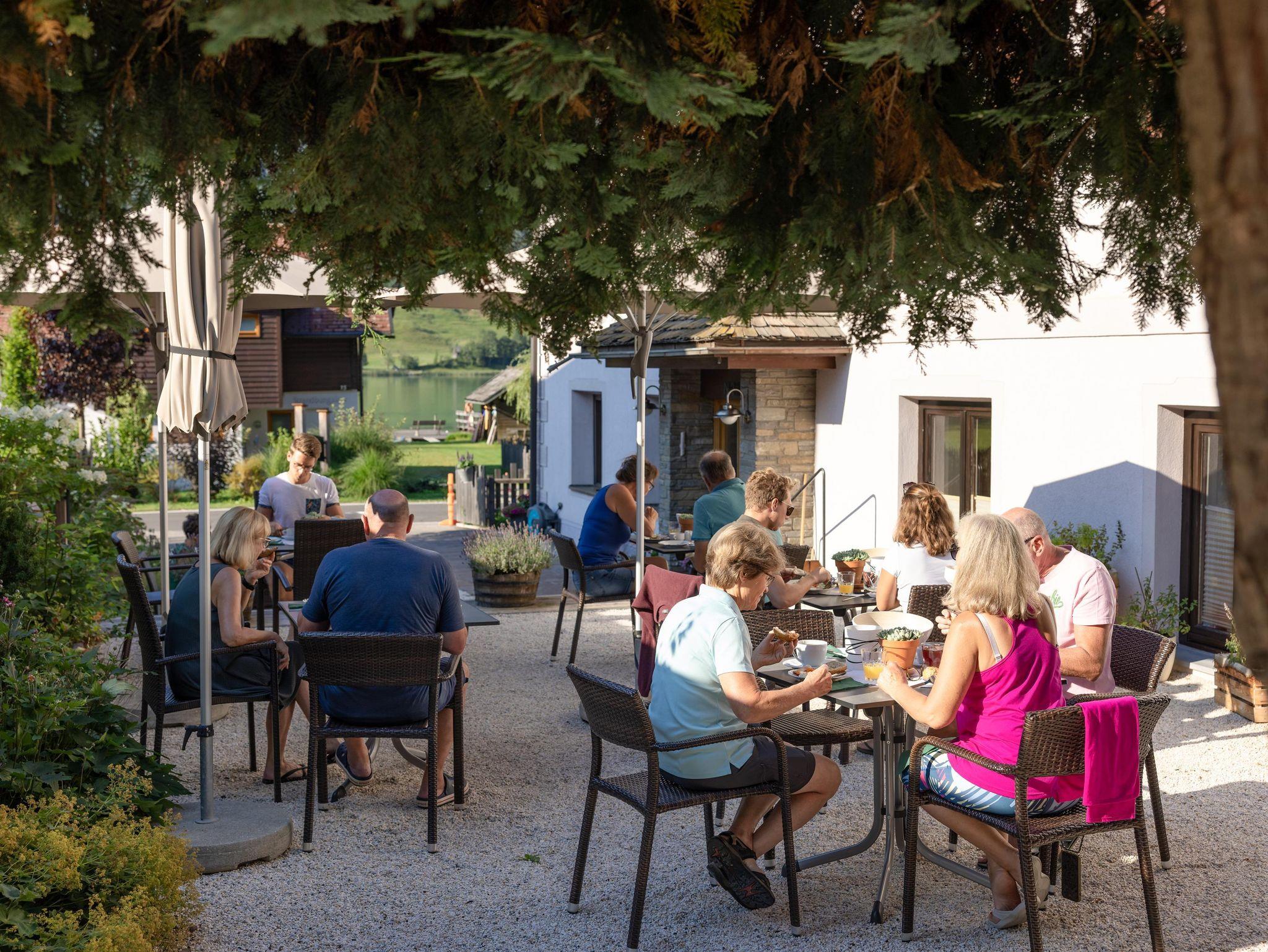 • kein Frühstück für Zimmer und Fewo. Folgendes Frühstücksservice bieten wir weiterhin an: Frühstückskaffeesortiment, Frühstücksgedeck, Brötchenservice, sowie ein erweitertes Kühlangebot. Der Frühstücksraum und die Terrasse stehen weiterhin zur Verfügung. Alternative Frühstücksmöglichkeiten im Hotel Neusacherhof/Nachbar, Cafe`s und Bäckerei im Zentrum.