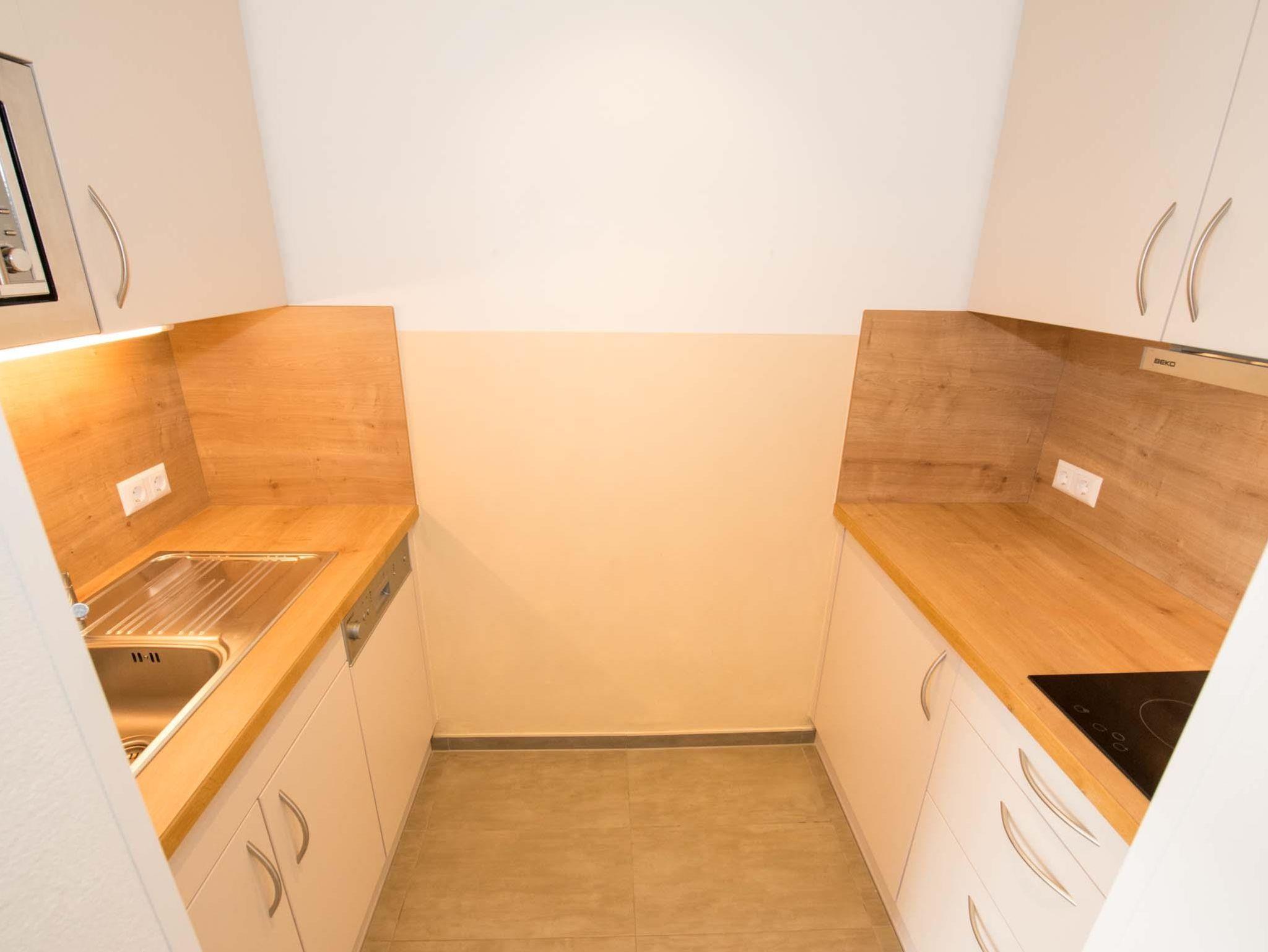 bis 2 Personen: Wohnung mit ca. 40 ², 1 Wohn-Schlafraum, 1 Doppelbett, Küchenzeile, Esstisch, 1 Dusche/WC, Südbalkon mit Seeblick.