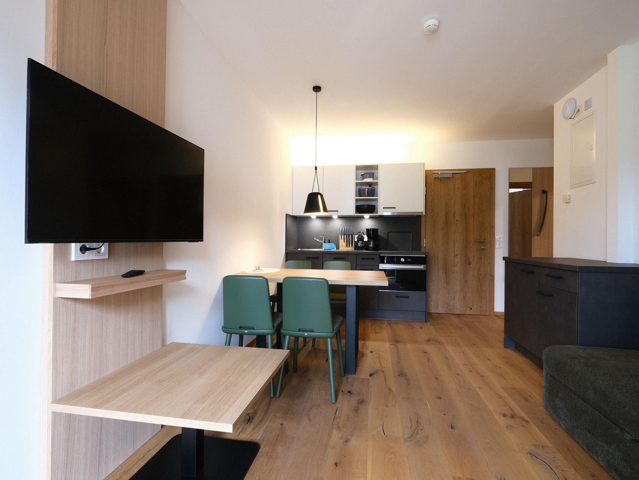 Das Apartment verfügt über ein Schlafzimmer mit neuen Boxspringbetten, ein modernes Badezimmer mit Dusche, WC und Kosmetikspiegel sowie ein Wohn-Esszimmer mit kleiner Küchenzeile. Zwei Flat-TVs sorgen dafür, dass sich Lieblingsfilme und Sportveranstaltungen problemlos koordinieren lassen. Kinder haben auf der Ausziehcouch im Wohnzimmer Platz.