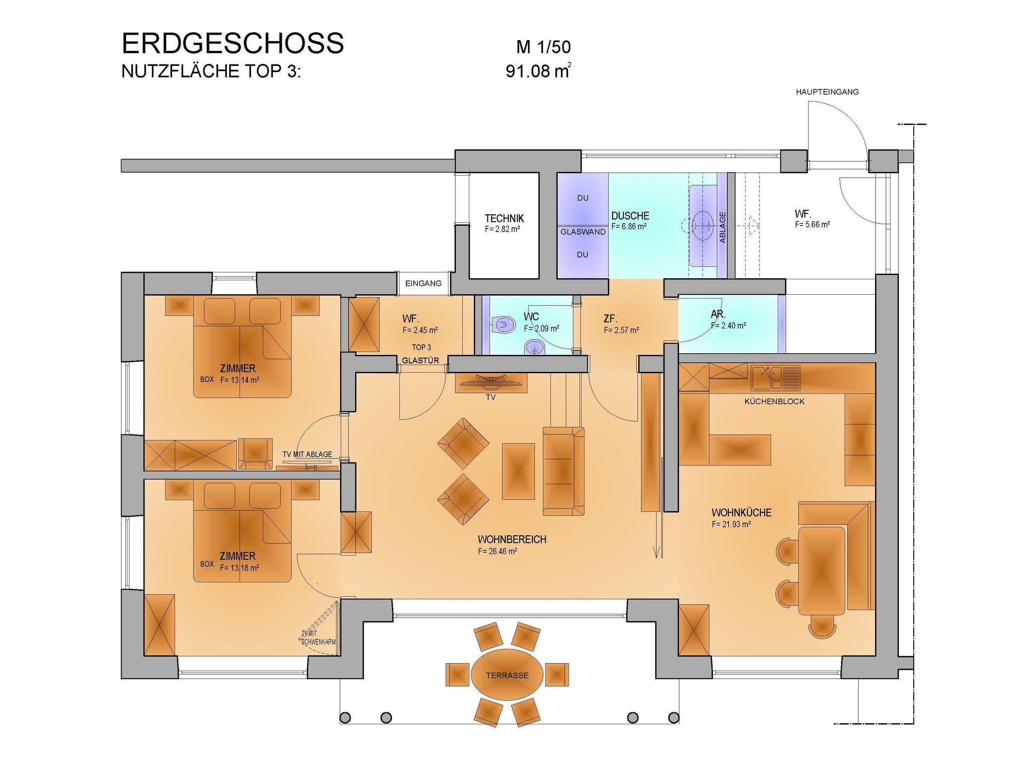 • Großes Wohnzimmer mit Terrasse für gemütliche „Draußen-Stunden“