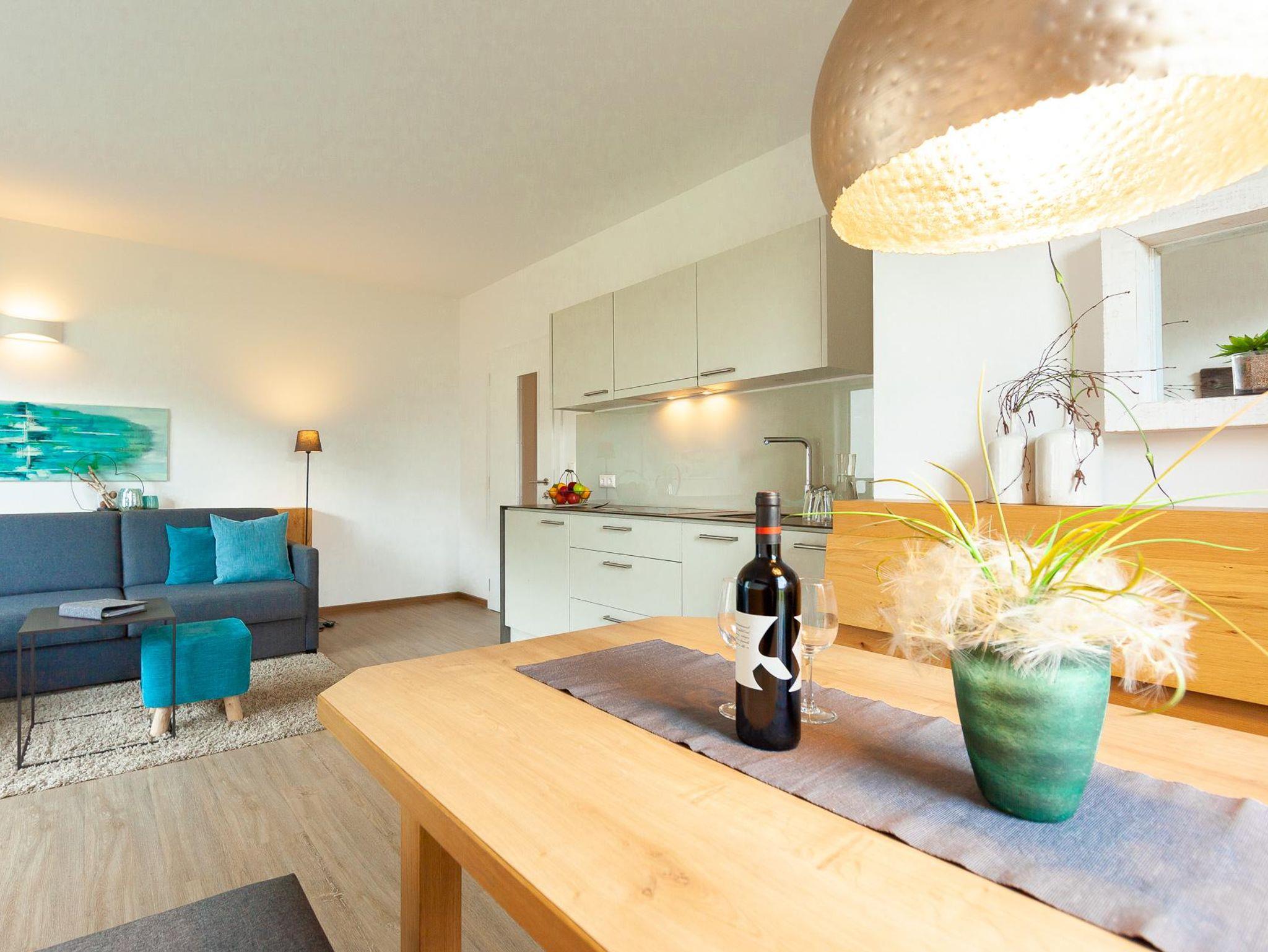 Im Schlafzimmer befindet sich neben dem Doppelbett noch zusätzlich ein bequemes Zustellbett, das einen weiteren Schlafplatz bietet. Der Wohnraum ist offen gestaltet und bietet neben der gut ausgestatteten Küche auch einen gemütlichen Essbereich. Eine große Couch mit Schlaffunktion sorgt für flexible Schlafmöglichkeiten und zusätzlichen Komfort.