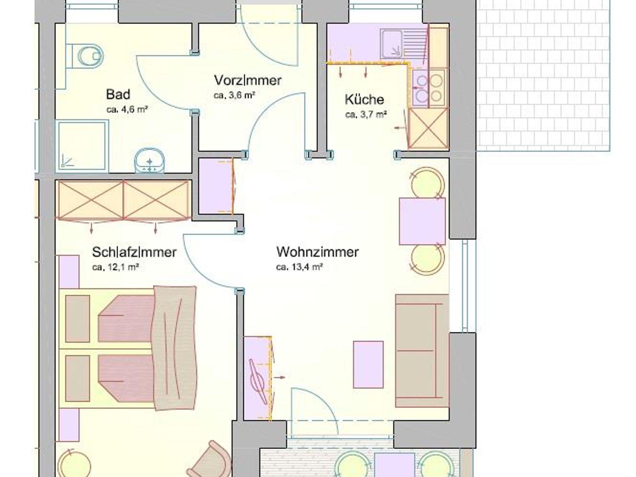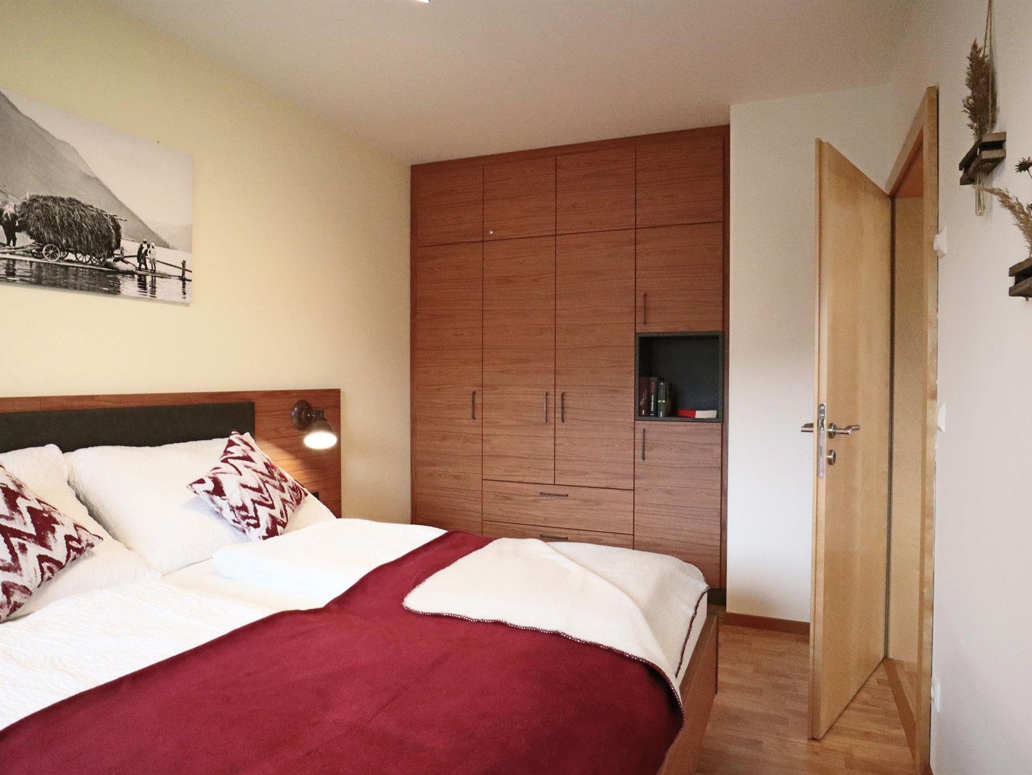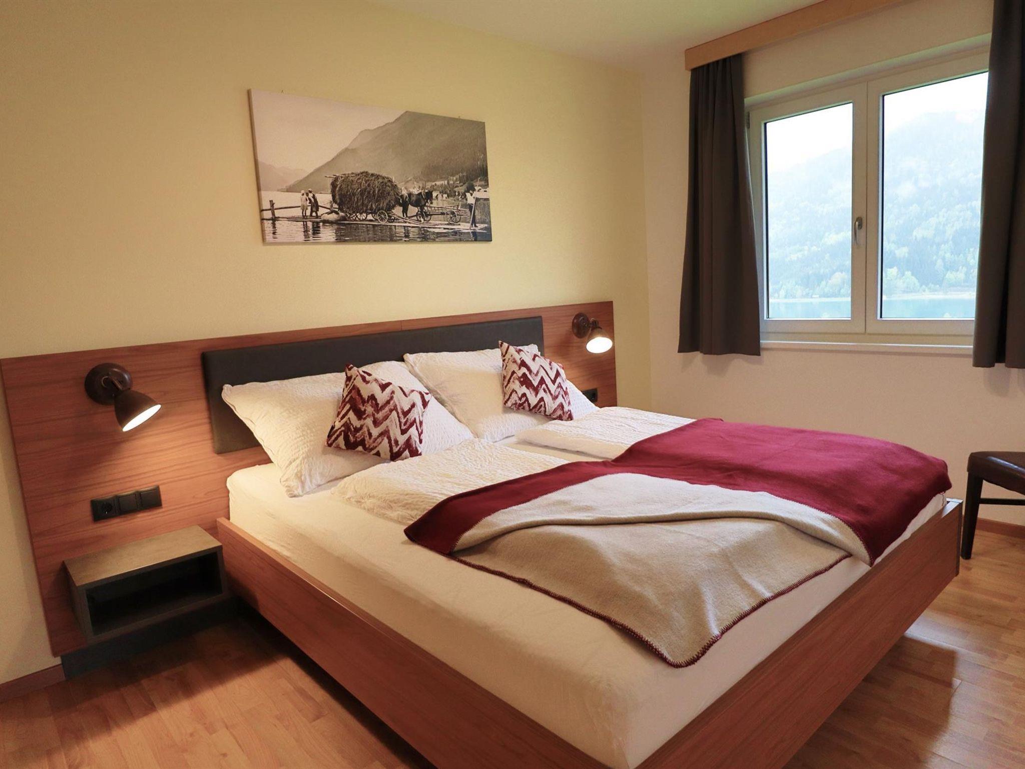 Die Ferienwohnung befindet sich im ersten Stock, ist aber vom Auto aus, barrierefrei zu erreichen. Der Balkon bietet einen herrlichen und ruhigen Blick über den See. Die Wohnung besteht aus 4 Räumen. Sie ist gemütlich und modern eingerichtet. Die Wohnung beinhaltet ein Wohnzimmer, ein Schlafzimmer, ein Vorzimmer, ein Bad mit integrierter Toilette und eine komplett eingerichtete Küche (mit Geschirrspüler, Kühlschrank, Mikrowelle, Kaffeemaschine, Elektroherd mit Backofen und Wasserkocher). Insgesamt misst die Wohnung ca. 41m².