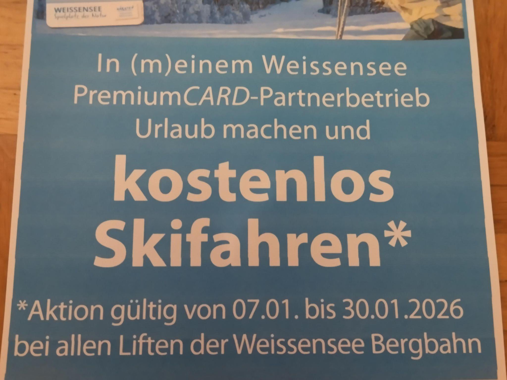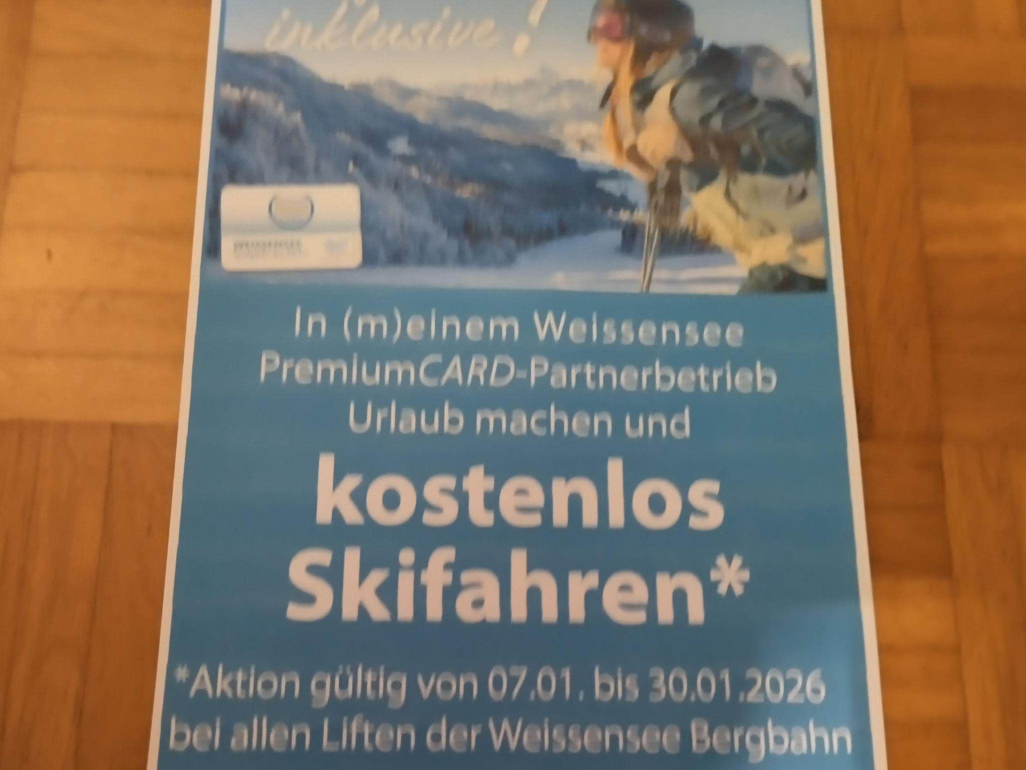 Das Haus Birke ist Mitglied bei Schifahren inclusive.Kostenfreie Schikarten für alle Personen vom 7.1.26 bis 30.1.26 (auch ohne Schi kostenfeie benützung der Weissensee Bergbahn