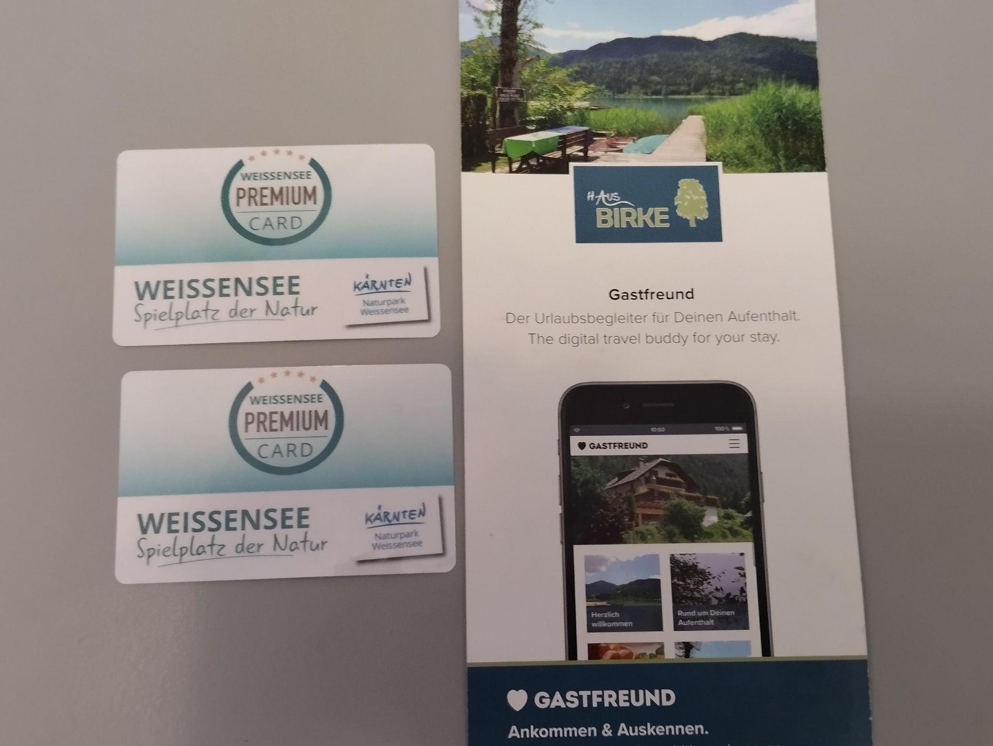 Bei Buchung erhalten Sie die PREMIUMCARD Weissensee für viele Vergünstigungen und kostenfreier Nutzung wird bei Anreise von uns ausgehändigt.