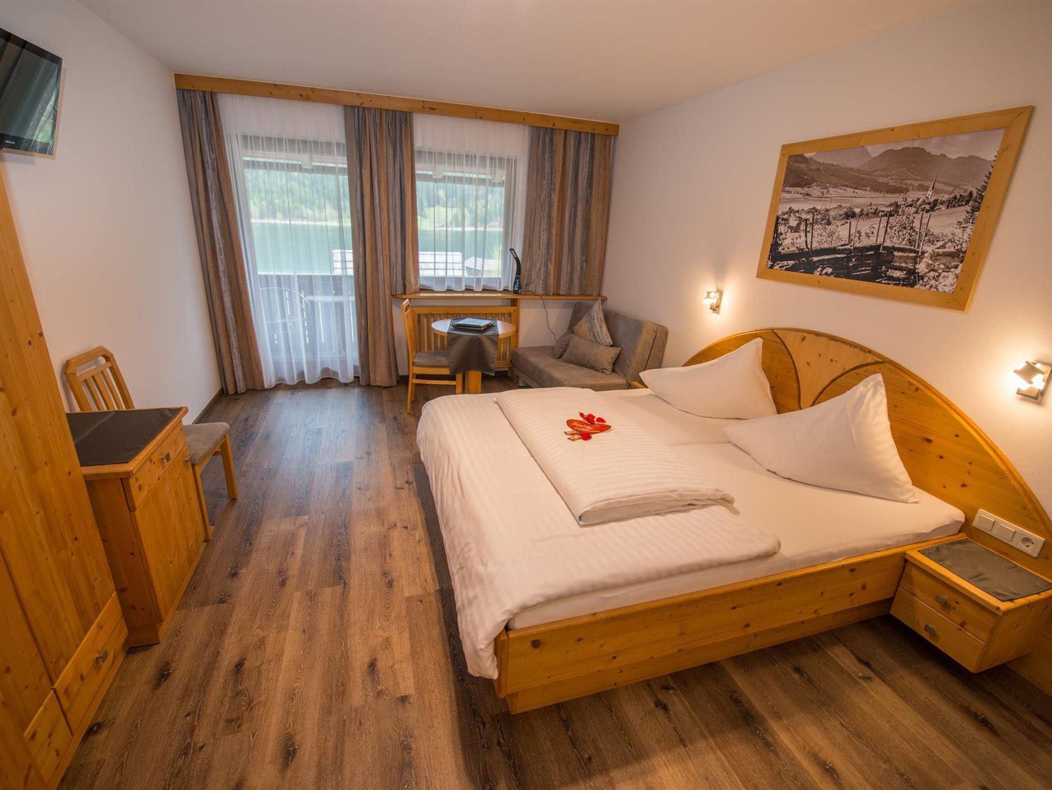 Schönes großes Doppelzimmer mit Frühstücksbuffet, Sitzecke, Naturholzmöbel mit liebe zum Detail, Balkon mit Blick über den Weissensee. (auch als Dreibettzimmer möglich) Dusche WC getrennt, Föhn, Sat-TV, Radiowecker, Tresor
