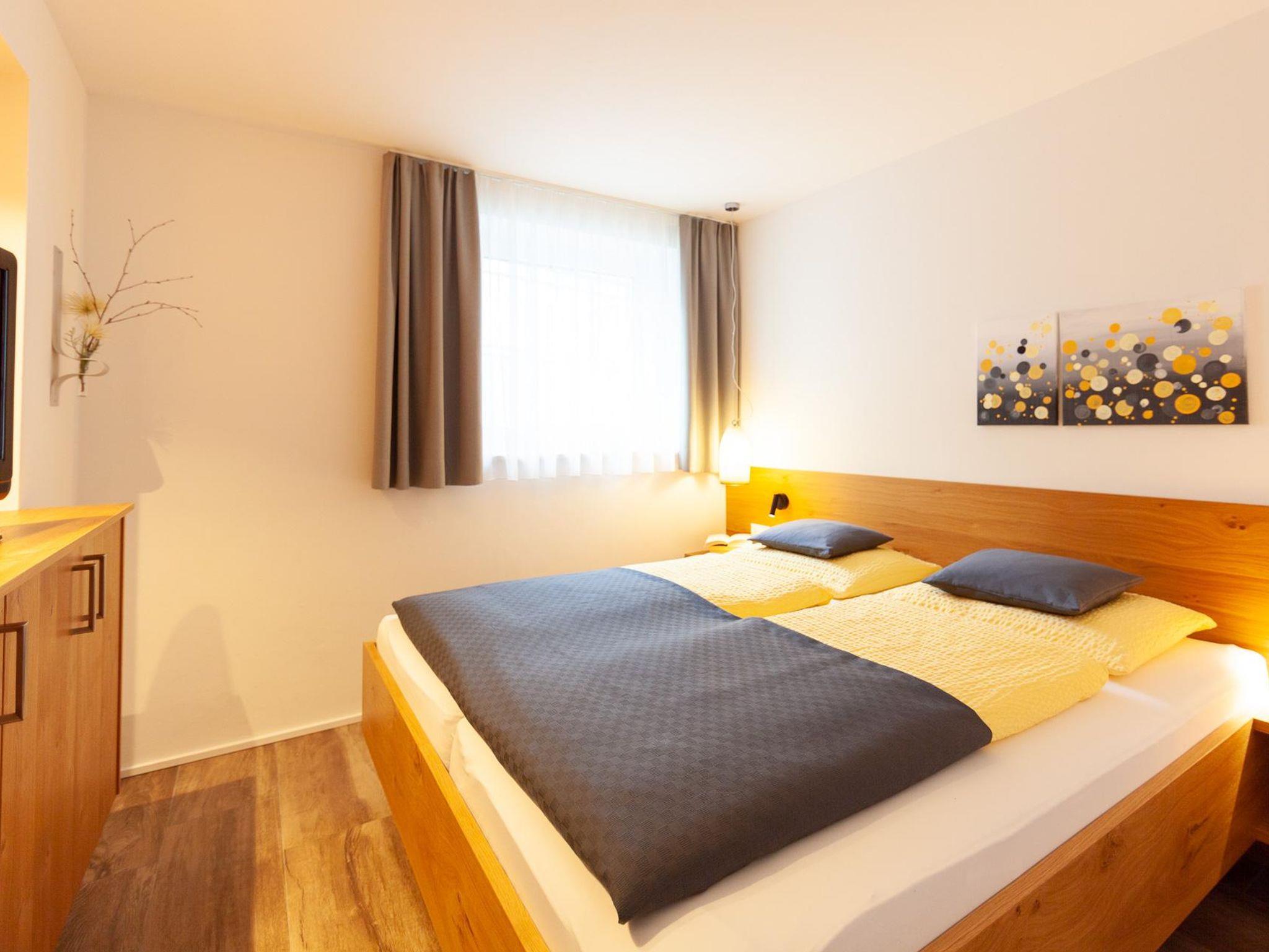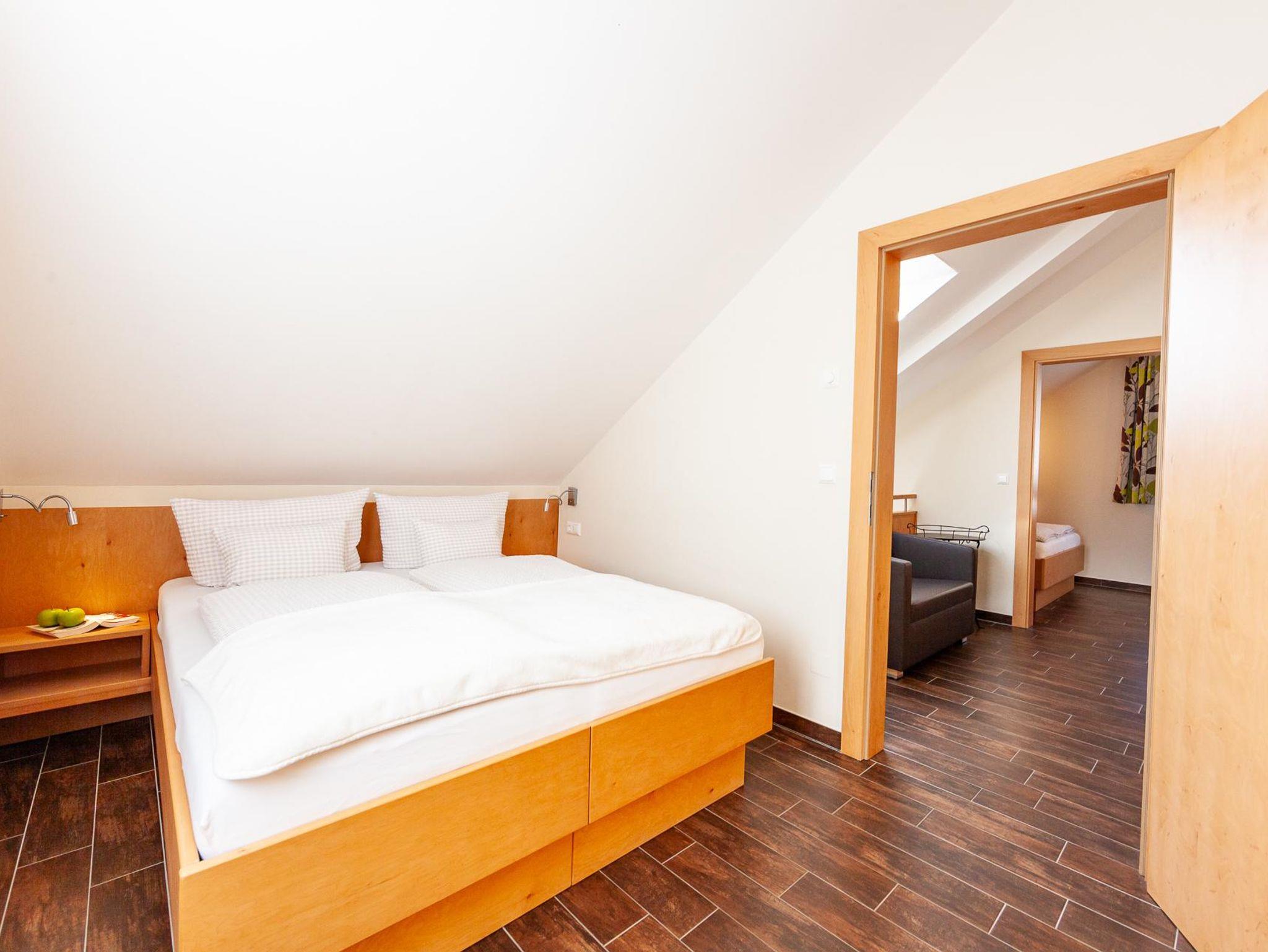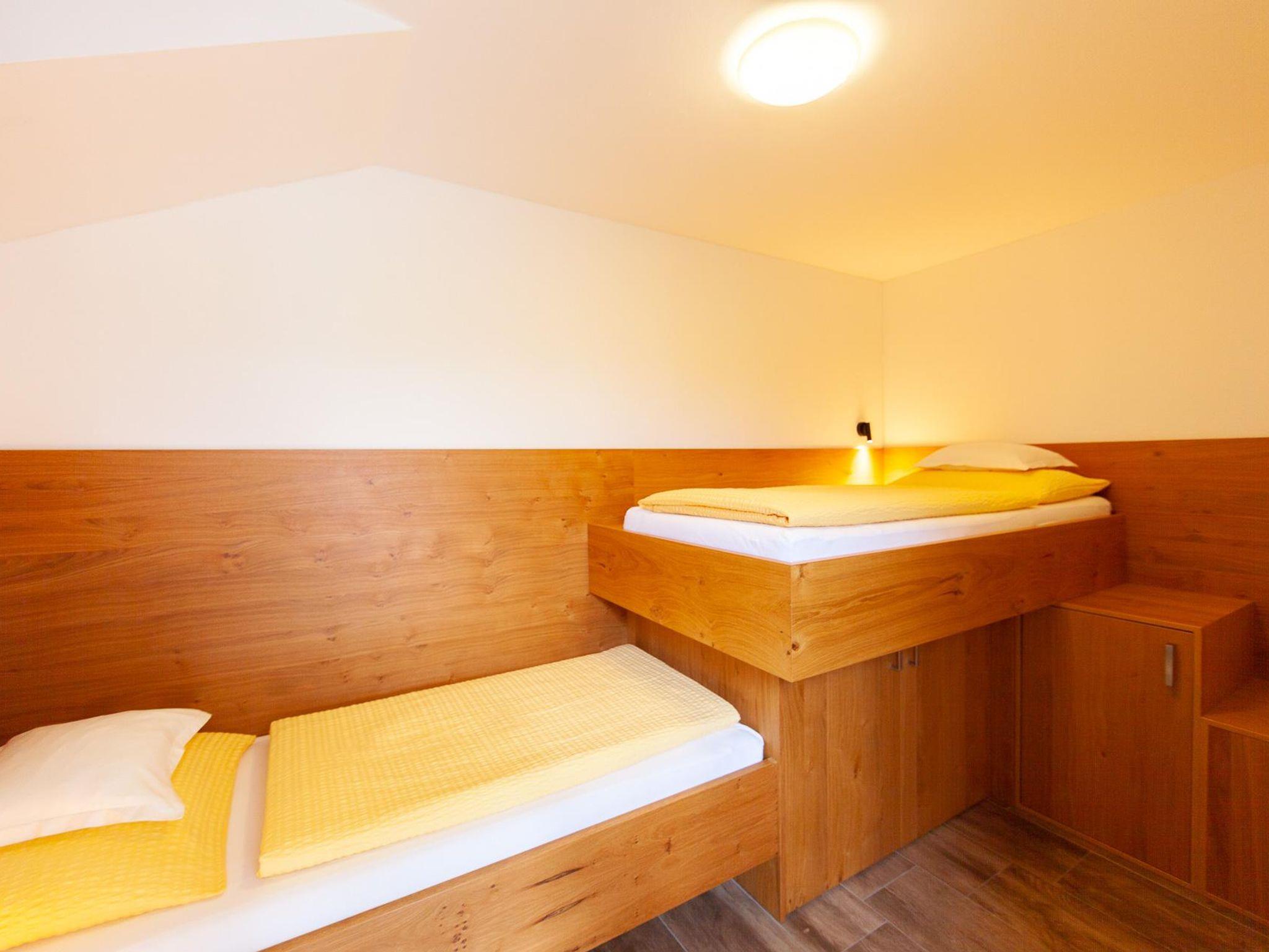 Zwei Schlafzimmer - einmal mit Doppelbett, einmal mit zwei höhenversetzten Einzelbetten - und eine gemütliche Schlafcouch im Wohnzimmer versprechen flexible, erholsame Schlafmöglichkeiten. Das Bad mit Dusche ist vom WC getrennt.