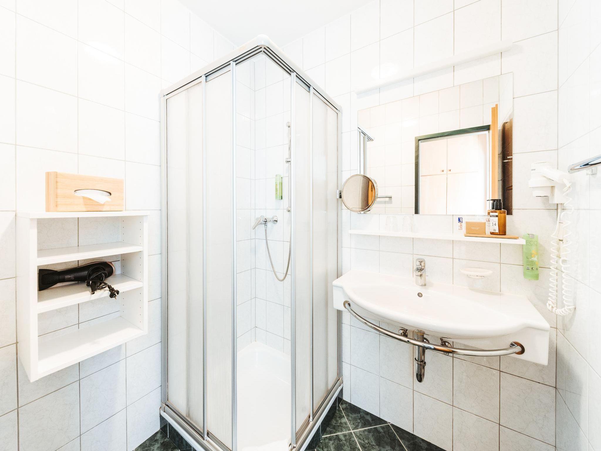 • Badezimmer mit Dusche, WC (teilweise getrennt), Fön