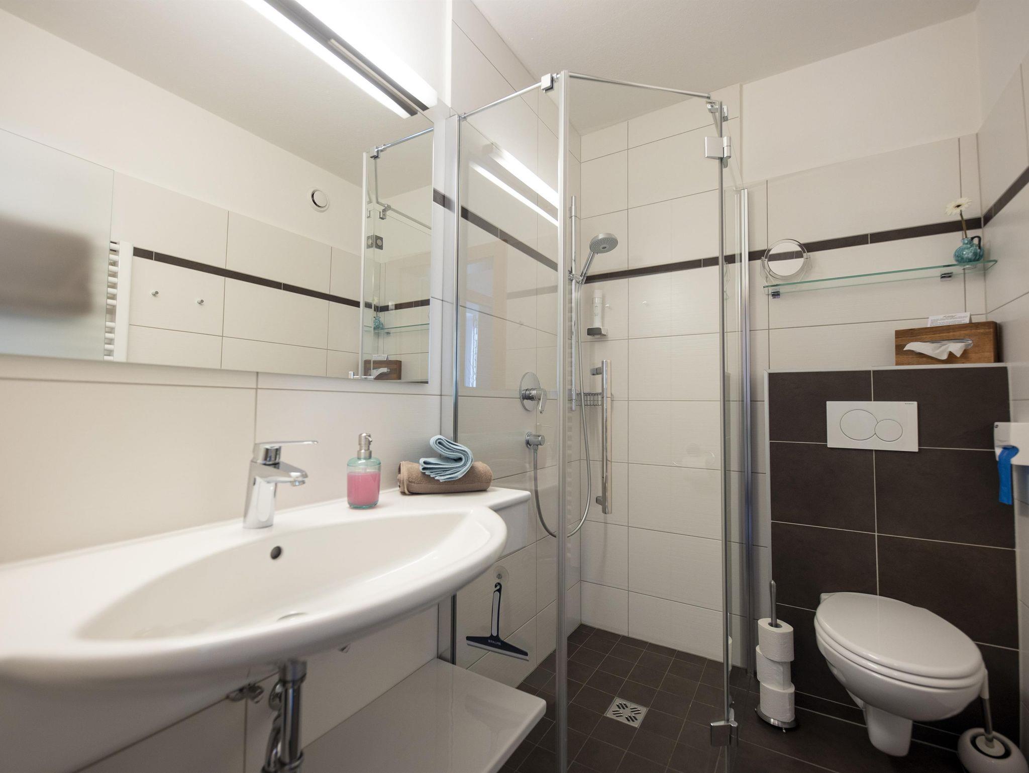 Gemütliche und liebevoll eingerichtete Doppelzimmer mit teilweiser zusätzlicher Couchliege, Dusche, WC, Balkon mit Blick zum See, Vorraum.