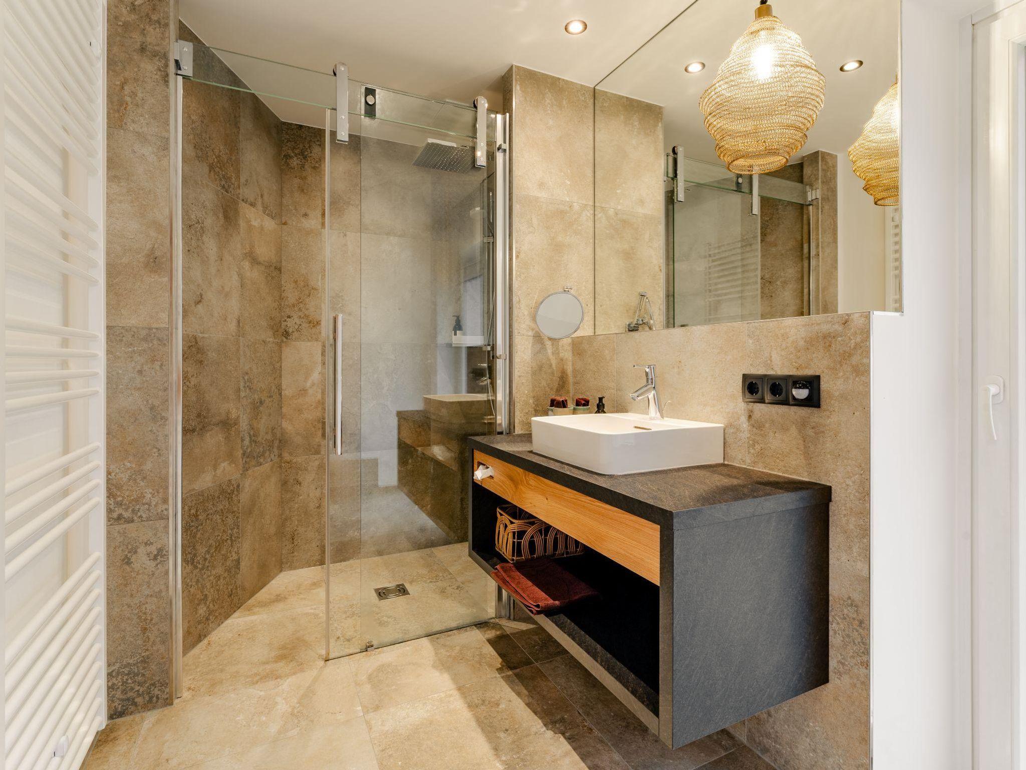 Hotelappartement mit Schlafzimmer, Wohnraum mit Ausziehcouch,Badezimmer mit Dusche/WC, begehbarer Schrank, Vorraum, Große Terrasse.