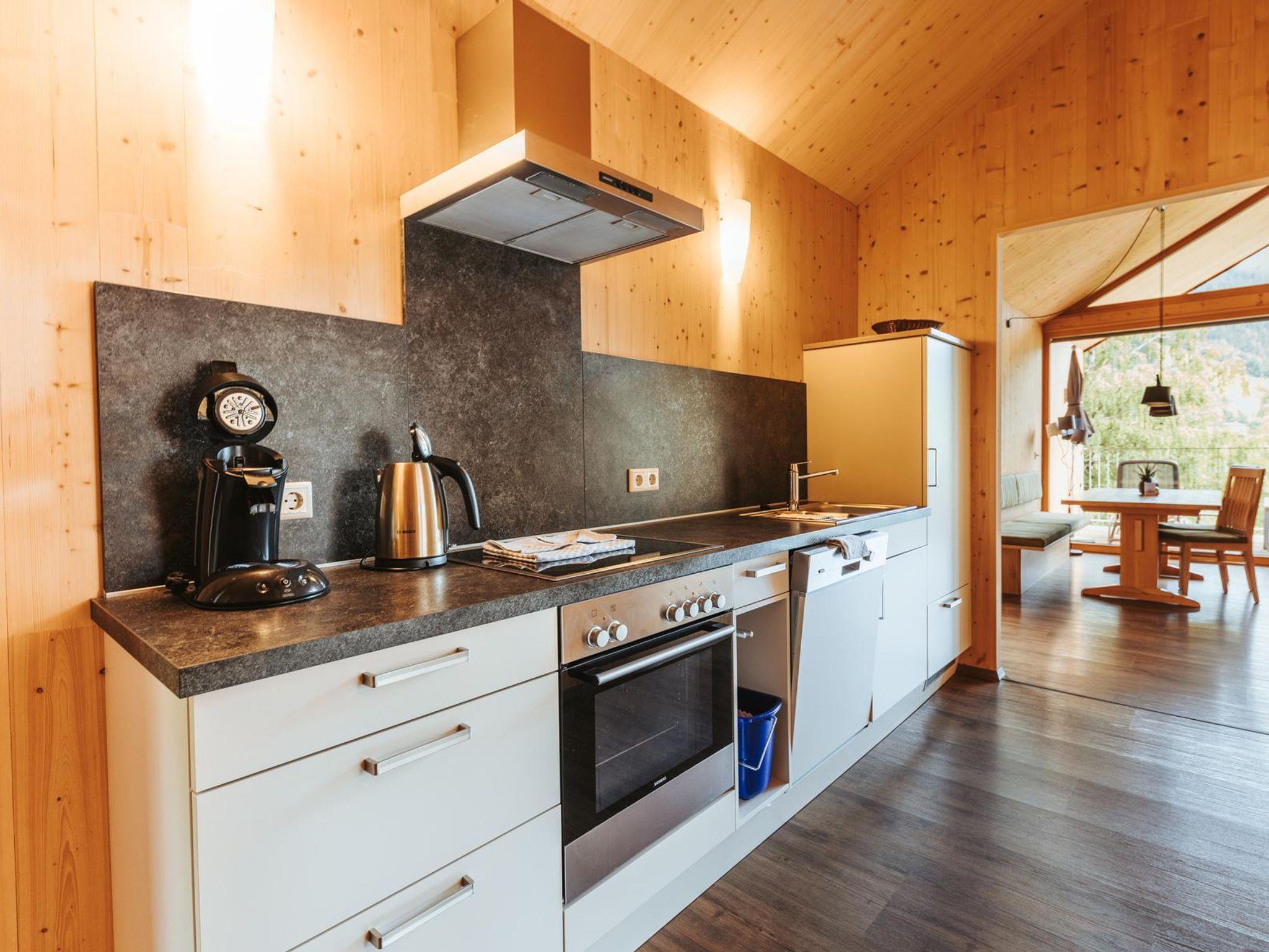 - Küche voll ausgestattet mit Ceran-Kochplatte und Backrohr, Kühlschrank, Kaffeemaschine, Wasserkocher, Geschirrspüler