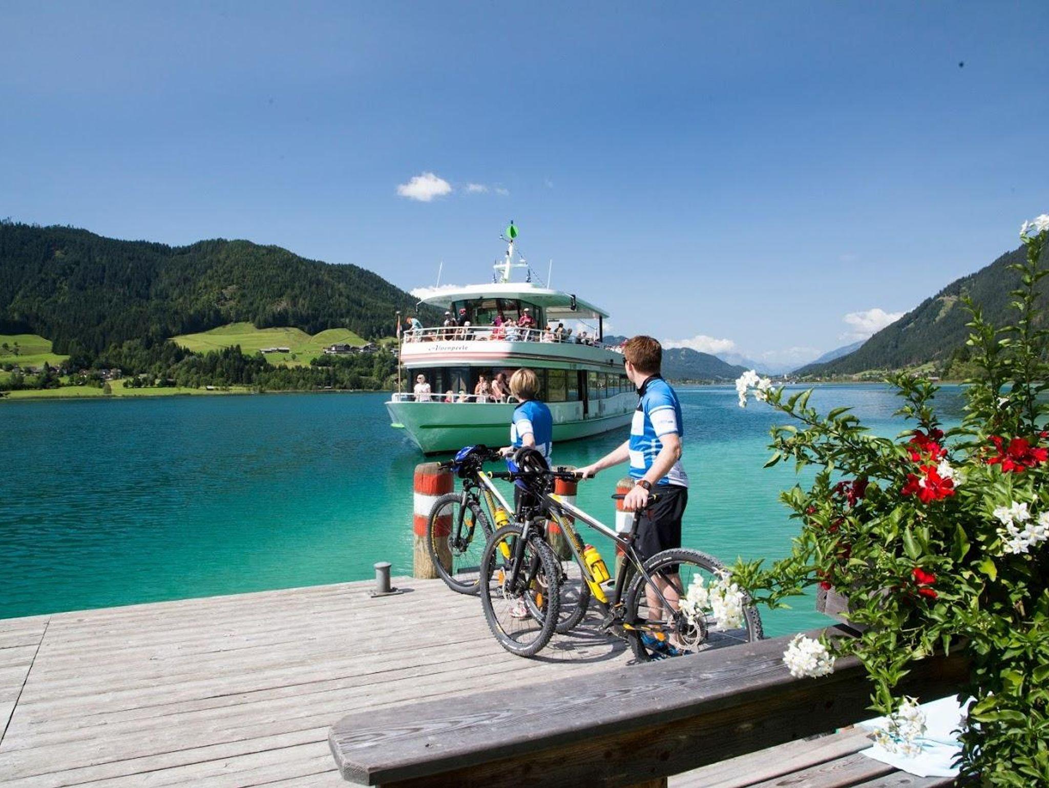 Touren, hauseigener MTB und E-MTB-Verleih, großzügiger Badestrand mit Liegestühlen und Sonnenschirmen.