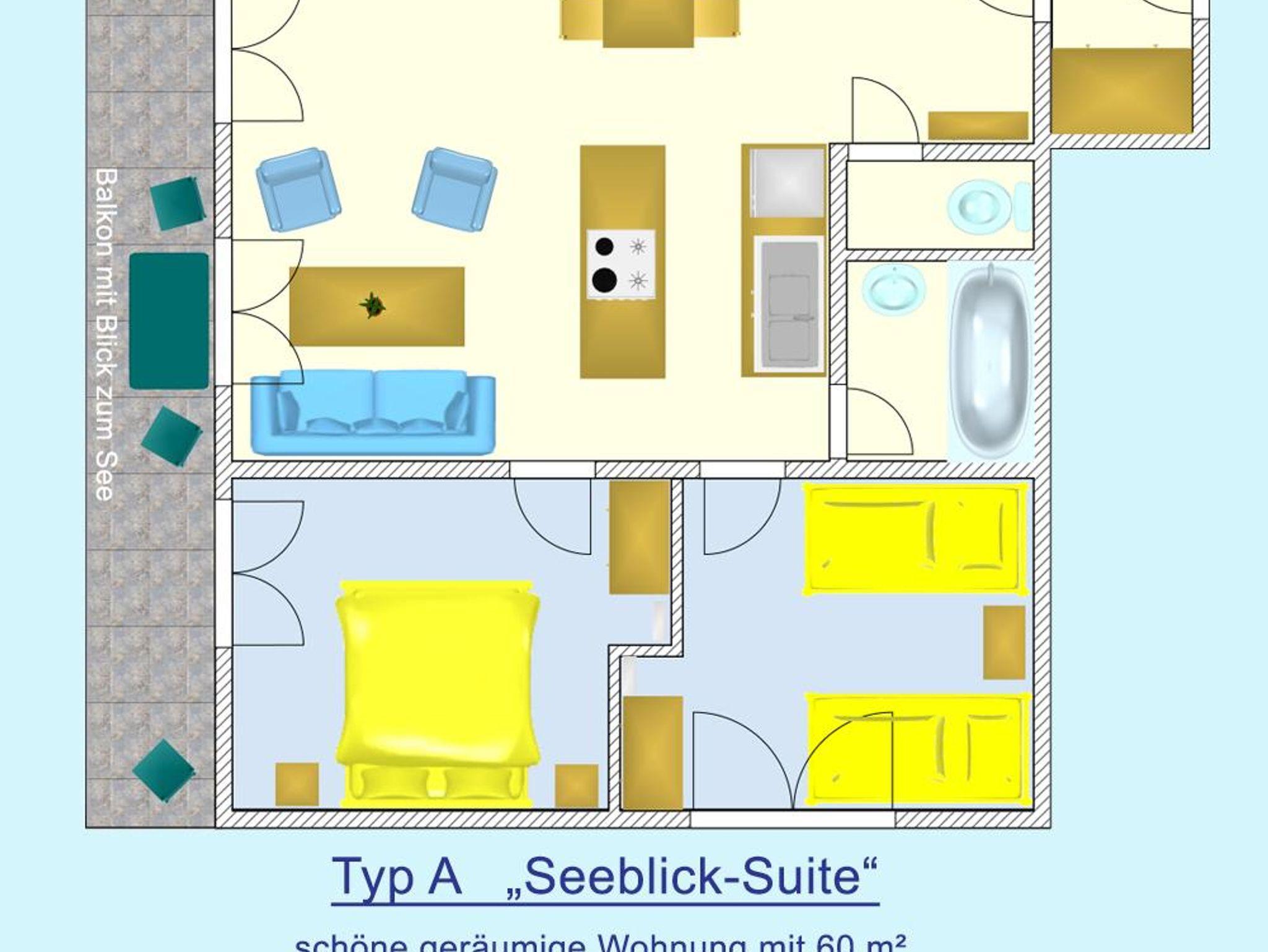Große, komfortable Ferienwohnung (60 m²) mit großem Balkon und Seeblick.