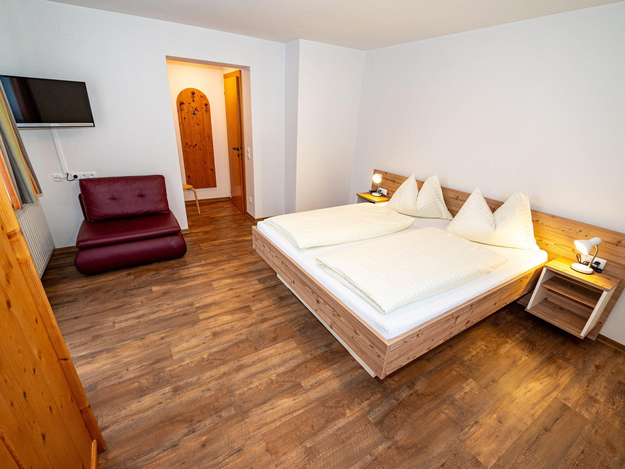 Fewo mit 48 m²/ ein Schlafzimmer mit Dusche und WC, Wohnraum mit Schlafcouch, Küchenzeile incl. Geschirrspüler, Sat-TV, Safe, großzügiger Südbalkon nach Osten und Süden zum See.