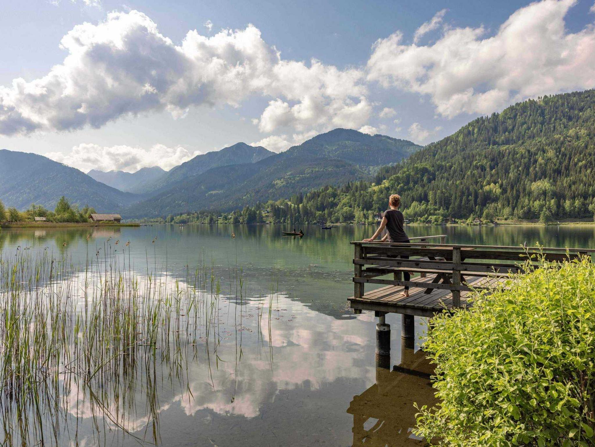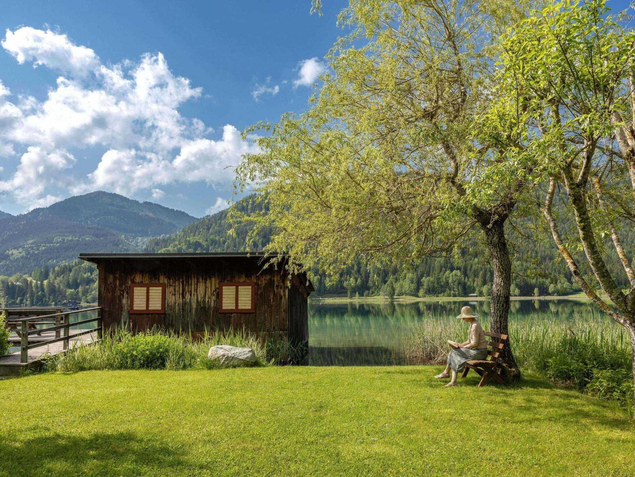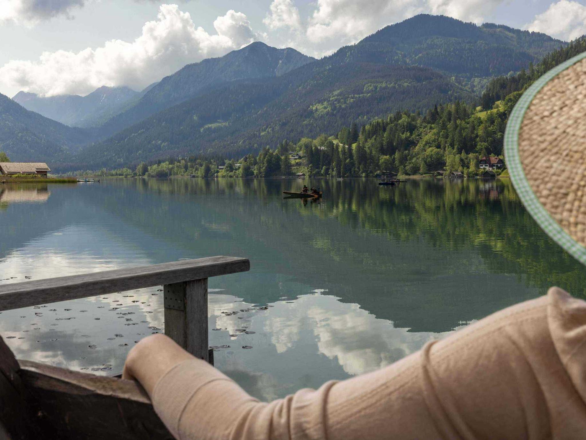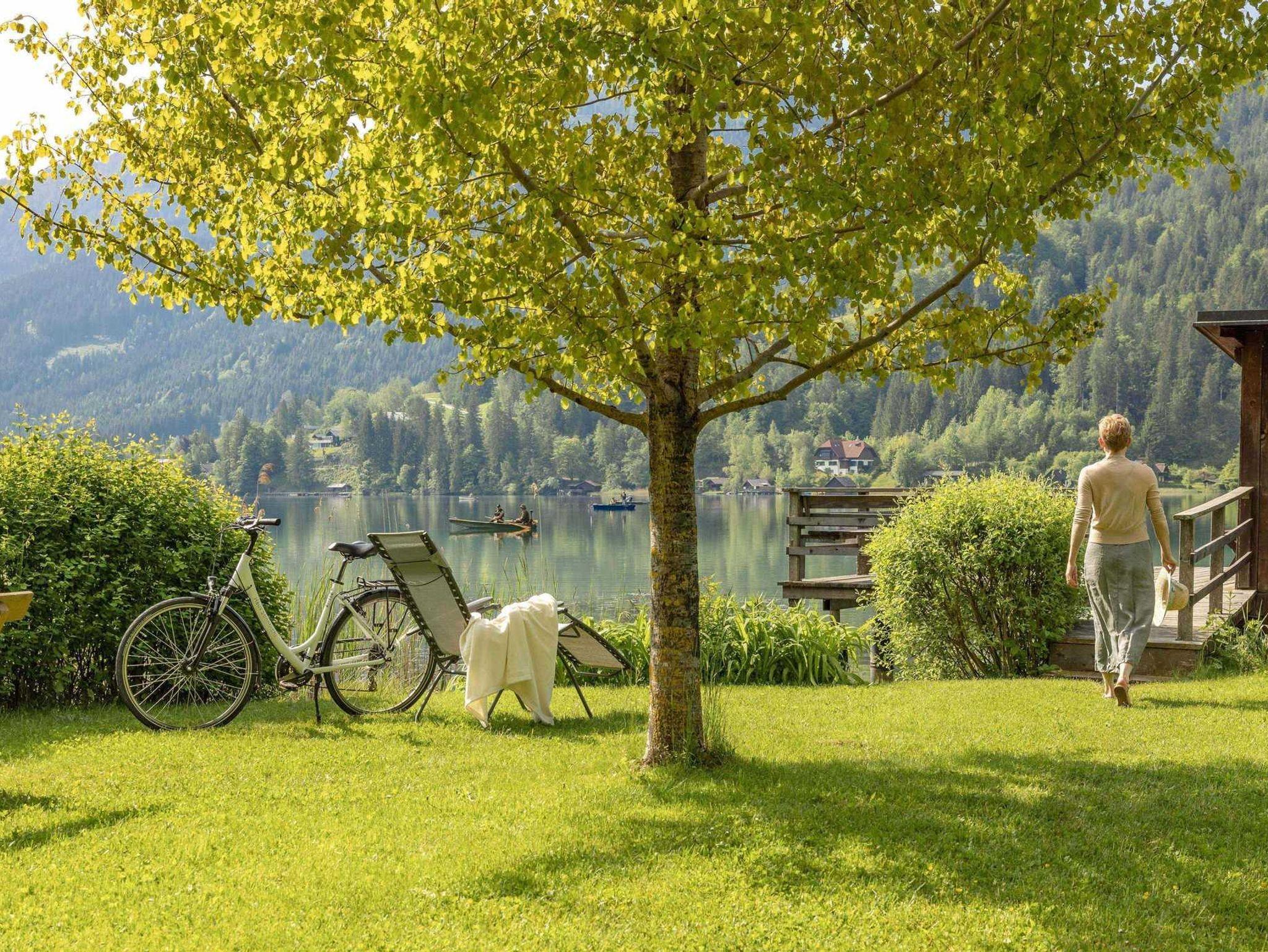 Nehmen Sie ein erfrischendes Bad am hauseigenen Badestrand oder erkunden Sie die nahe Bergwelt.