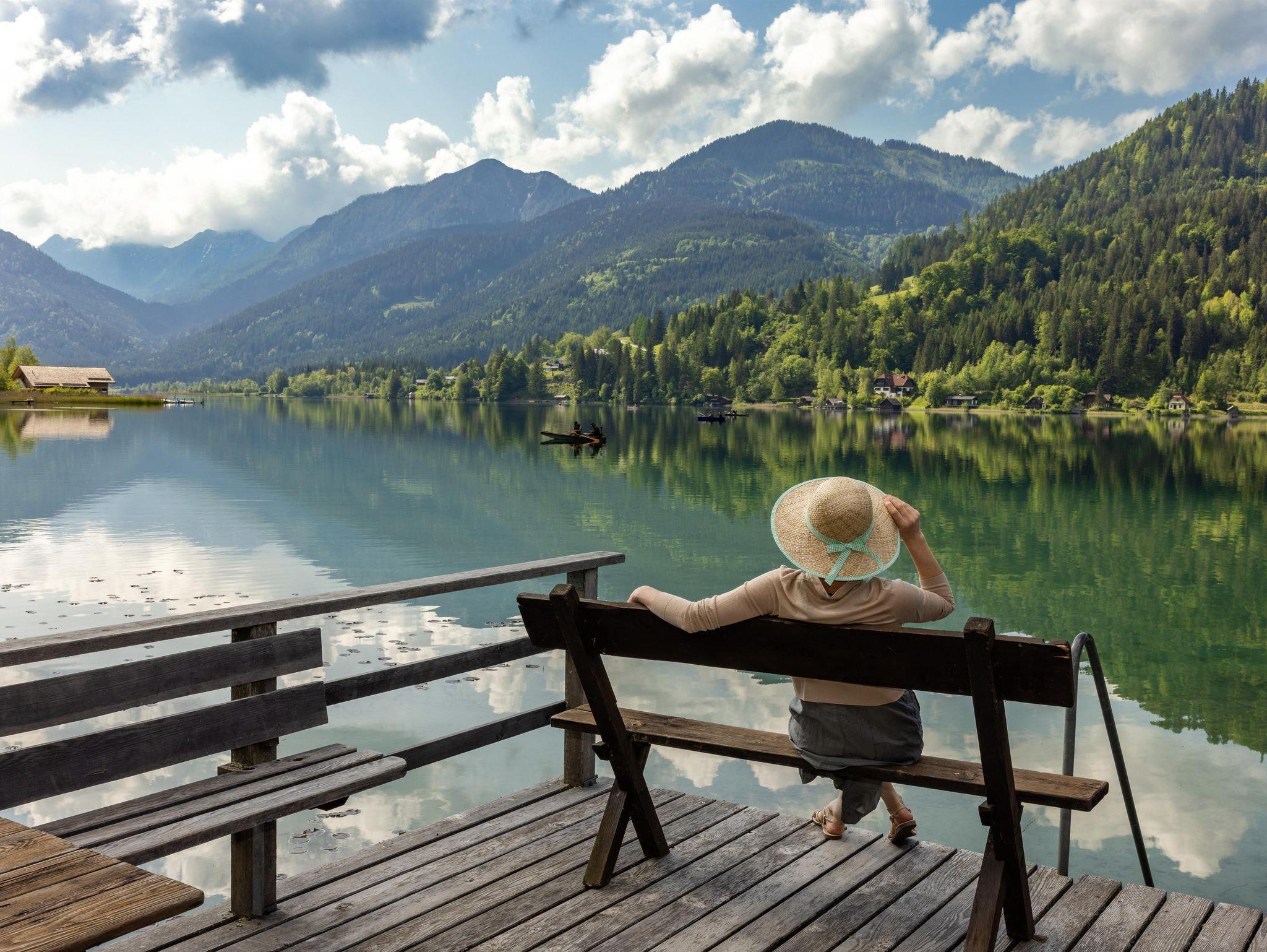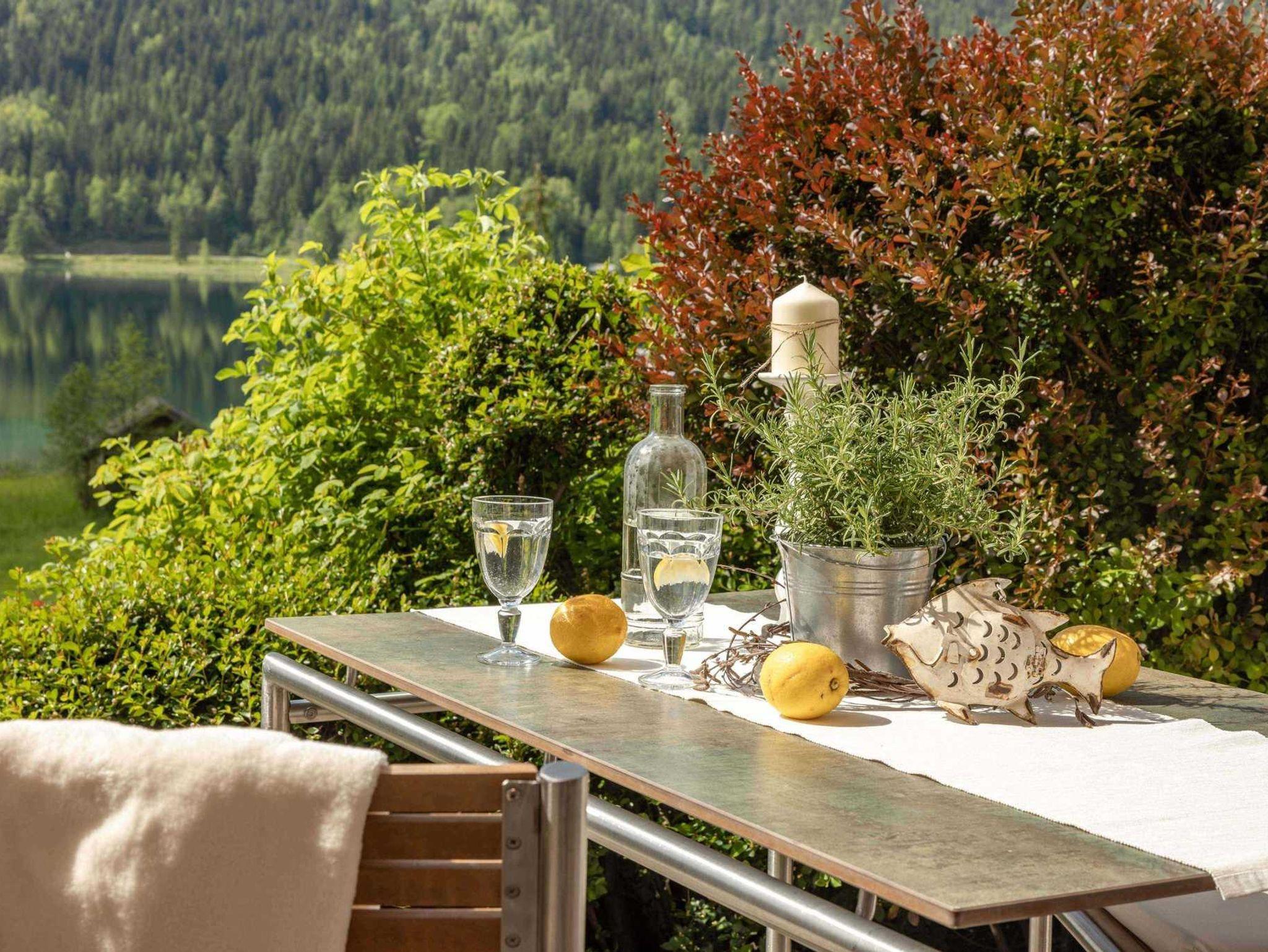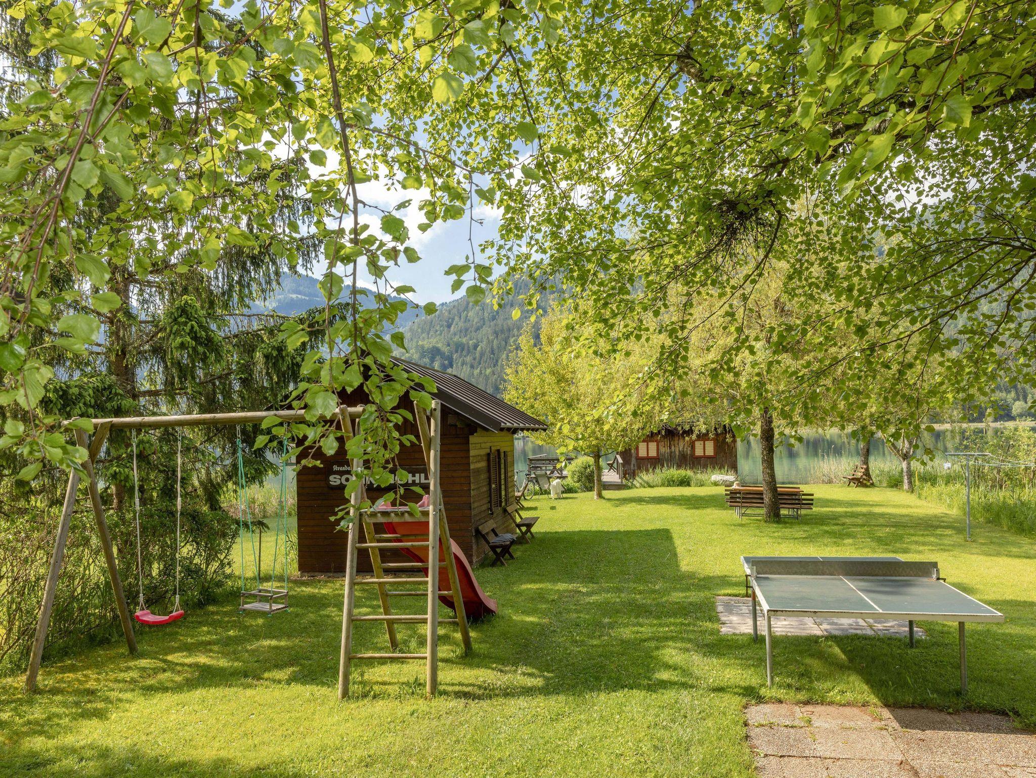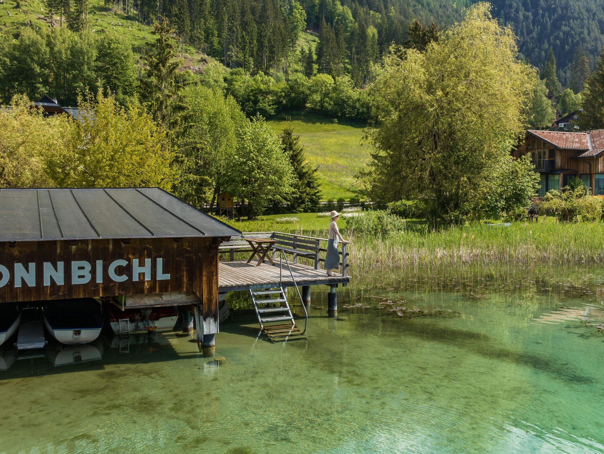 Nehmen Sie ein erfrischendes Bad am hauseigenen Badestrand oder erkunden Sie die nahe Bergwelt.