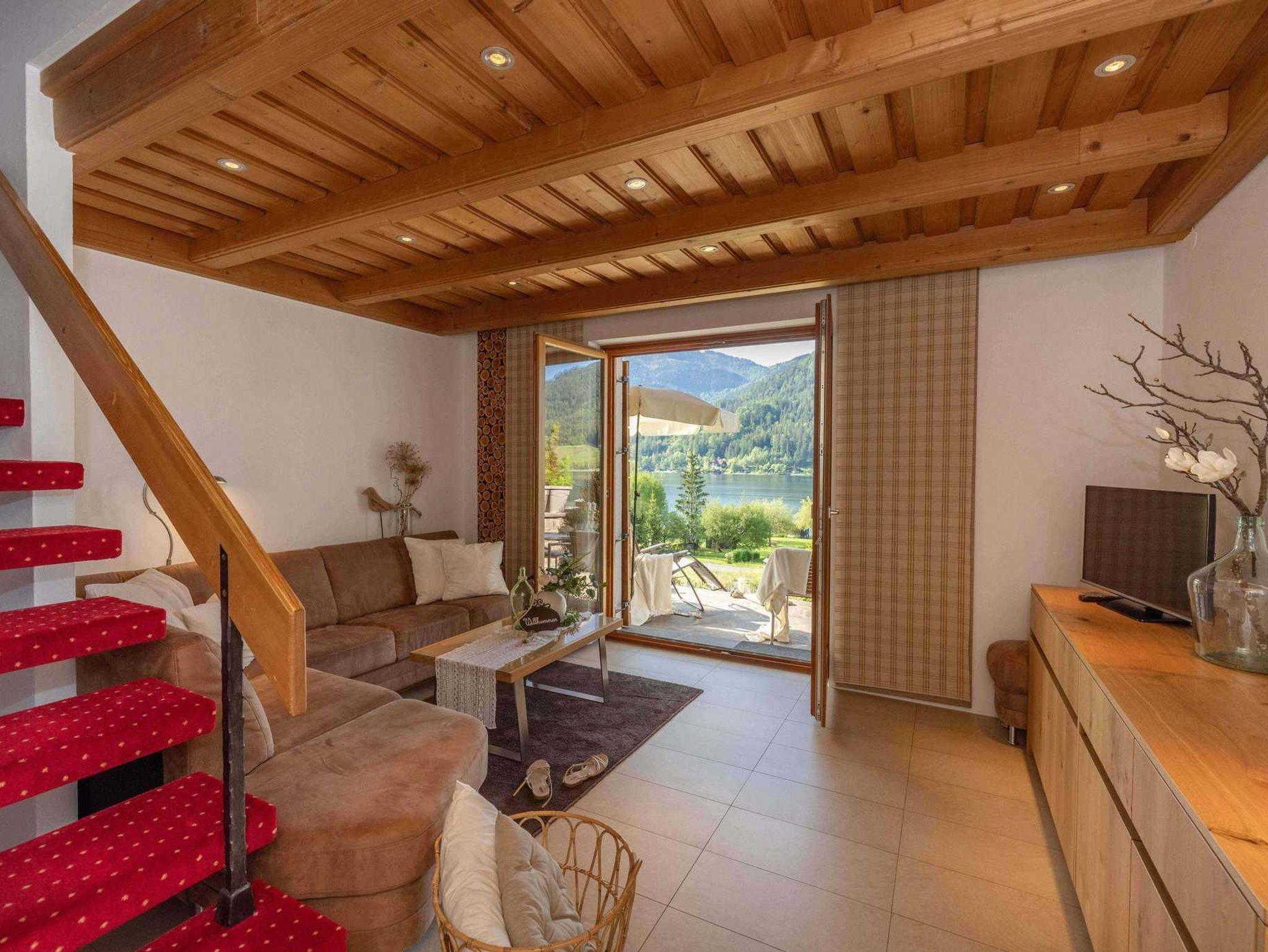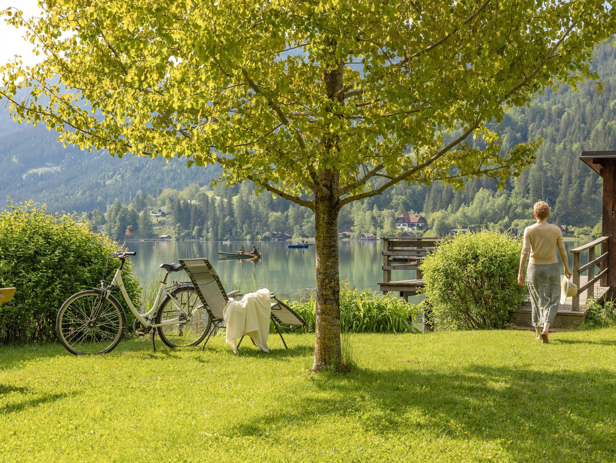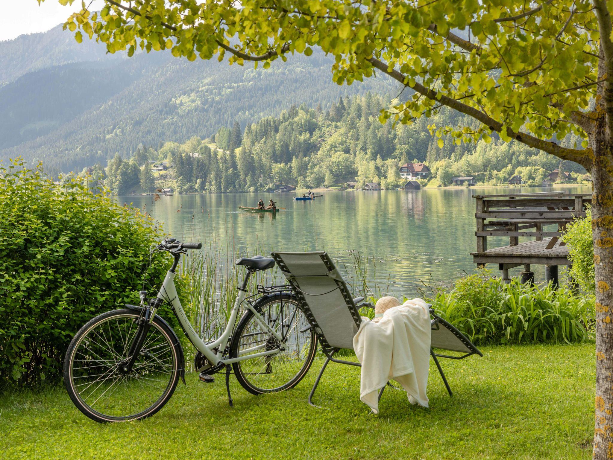 Der hauseigene Badeplatz befindet sich direkt vor Ihrer Ferienwohnung. Entspannen Sie sich am Strand oder erkunden Sie die nahe Bergwelt zu Fuß oder mit dem Rad.
