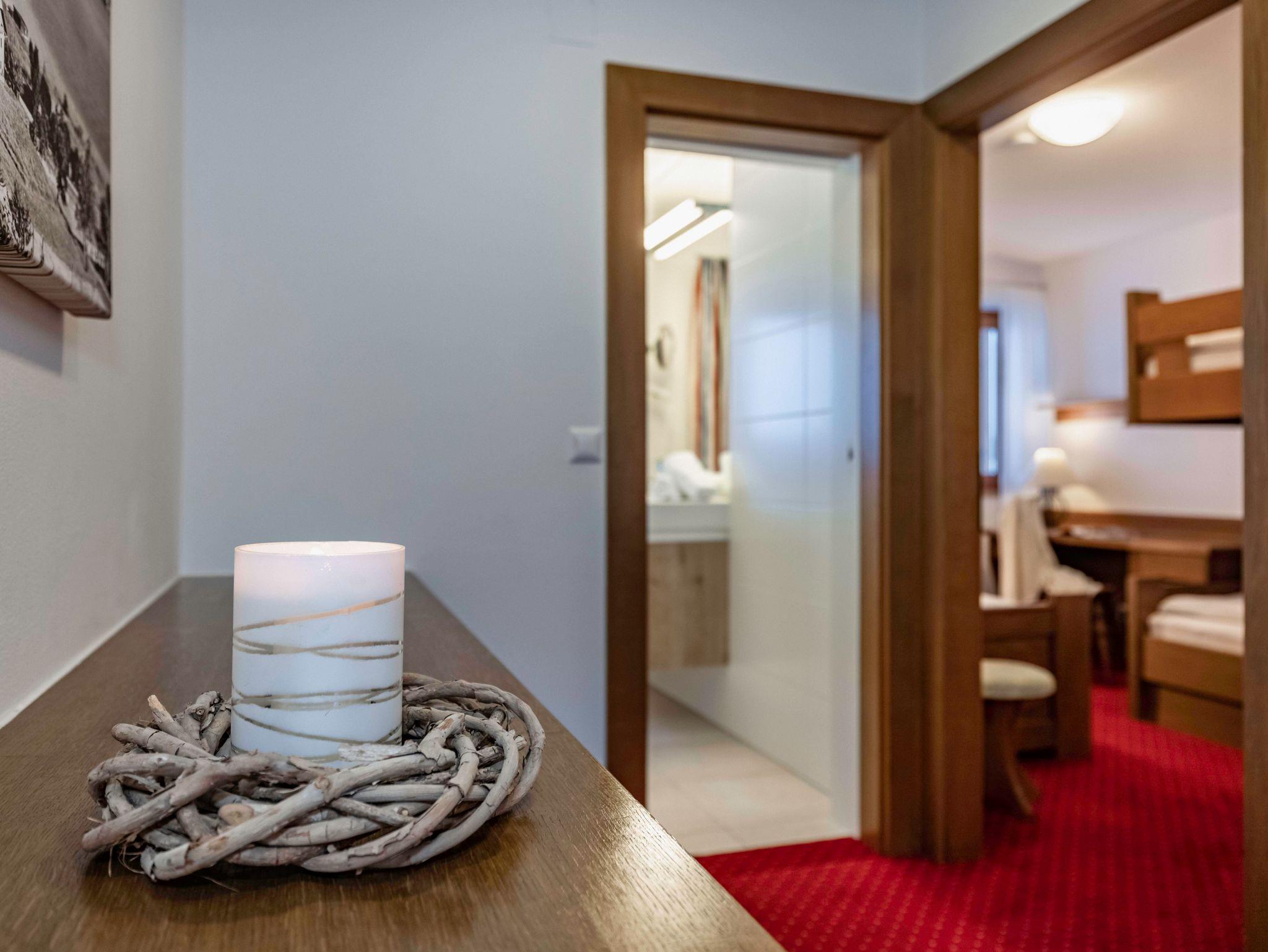 • ein nordseitig gelegenes Kinderzimmer mit zwei bzw. drei Betten, abhängig von der Wohnung. Vom Kinderzimmer aus hat man einen unverbauten Blick zum Wald.