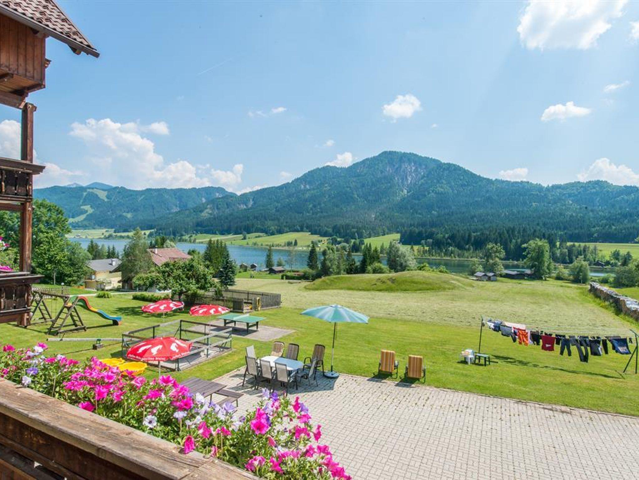 Vor unserem Haus, einem ehemaligen Bauernhof am Weissensee, können sich die kleinen Gäste am Spielplatz mit Sandkasten, auf der Schaukel und beim Tischtennis austoben. Zum eigenen Badestrand mit Steg, Bootshütte (WC, Kabinen) Ruderbooten, Strandmöbeln und Volleyballplatz - kommen Sie gleich über die Wiese.
