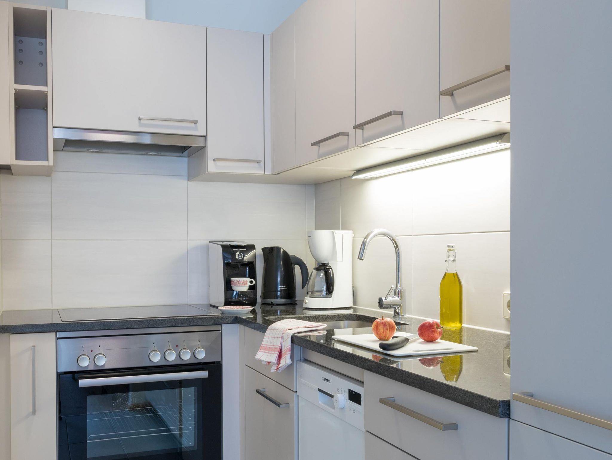 Alle unsere Apartments bieten eine voll ausgestattete Küche.