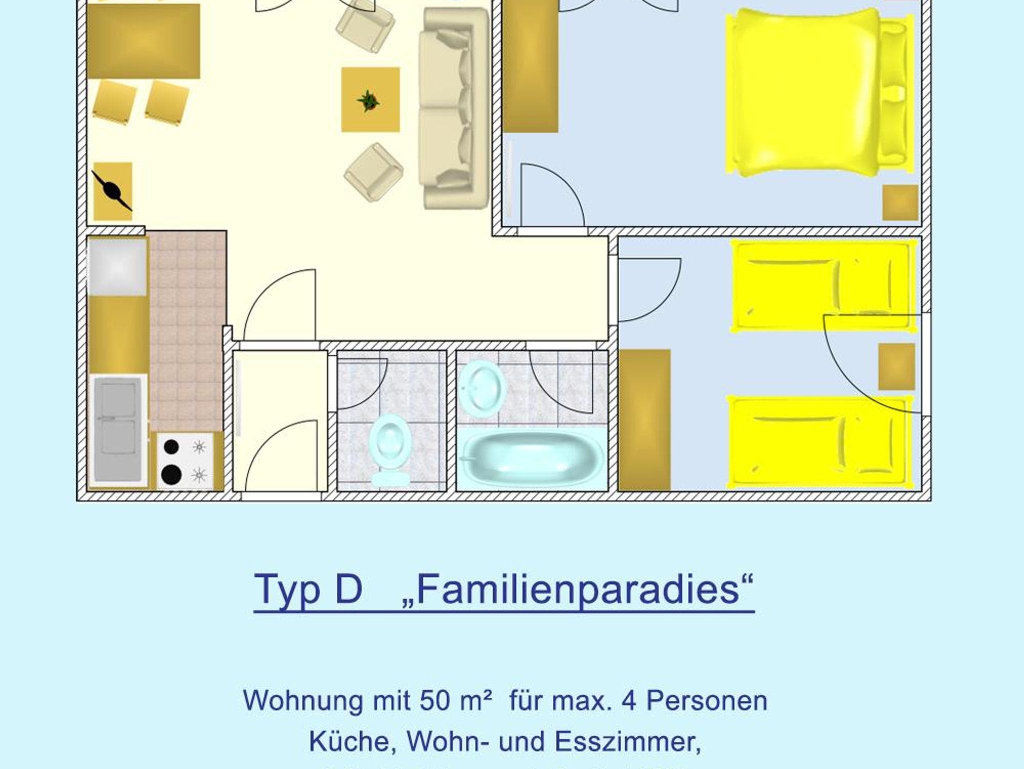 • 2 Schlafzimmer (1x Doppelbett und 2x Einzelbetten)