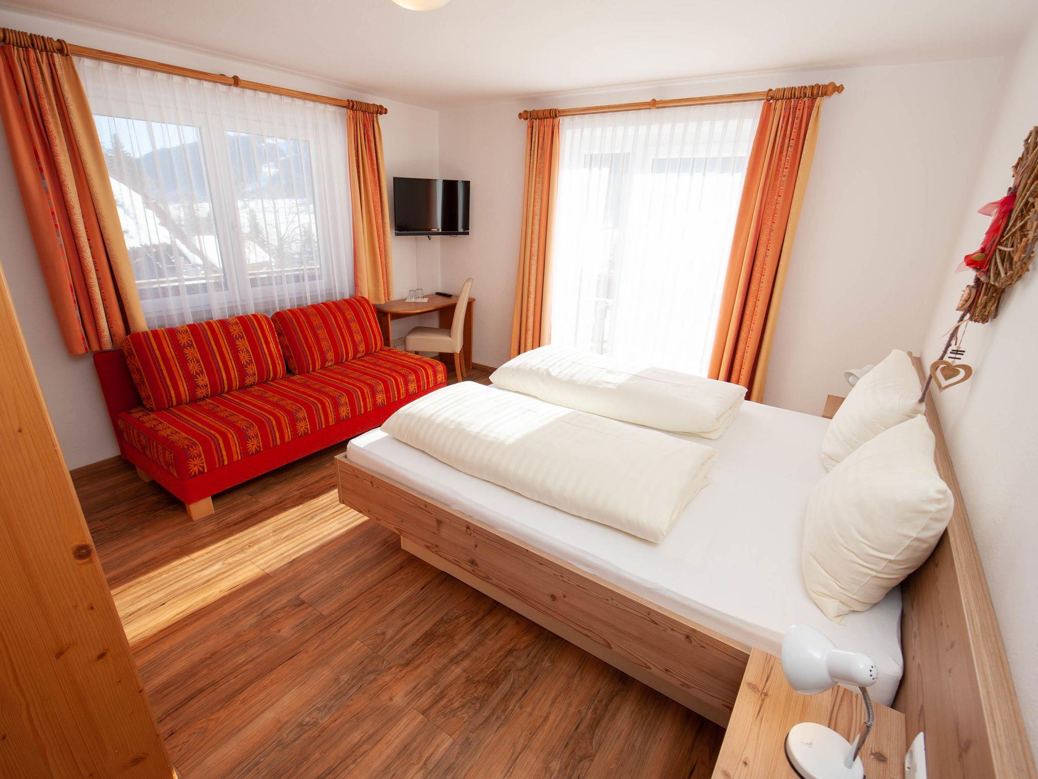 Vor unserem Haus, einem ehemaligen Bauernhof am Weissensee, können sich die kleinen Gäste am Spielplatz mit Sandkasten, auf der Schaukel und beim Tischtennis austoben. Zum eigenen Badestrand mit Steg, Bootshütte (WC, Kabinen) Ruderbooten, Strandmöbeln und Volleyballplatz - kommen Sie gleich über die Wiese.